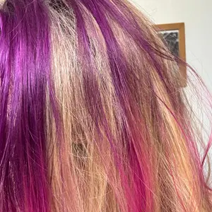 I just love these colors! I did an amethyst to rhodolite ombré peekaboo, under my medium blonde, and it looks so amazing! The colors are so vibrant and it’s really easy to use. I’ve never done vibrants before, and it turned out great. I couldn’t be happier!