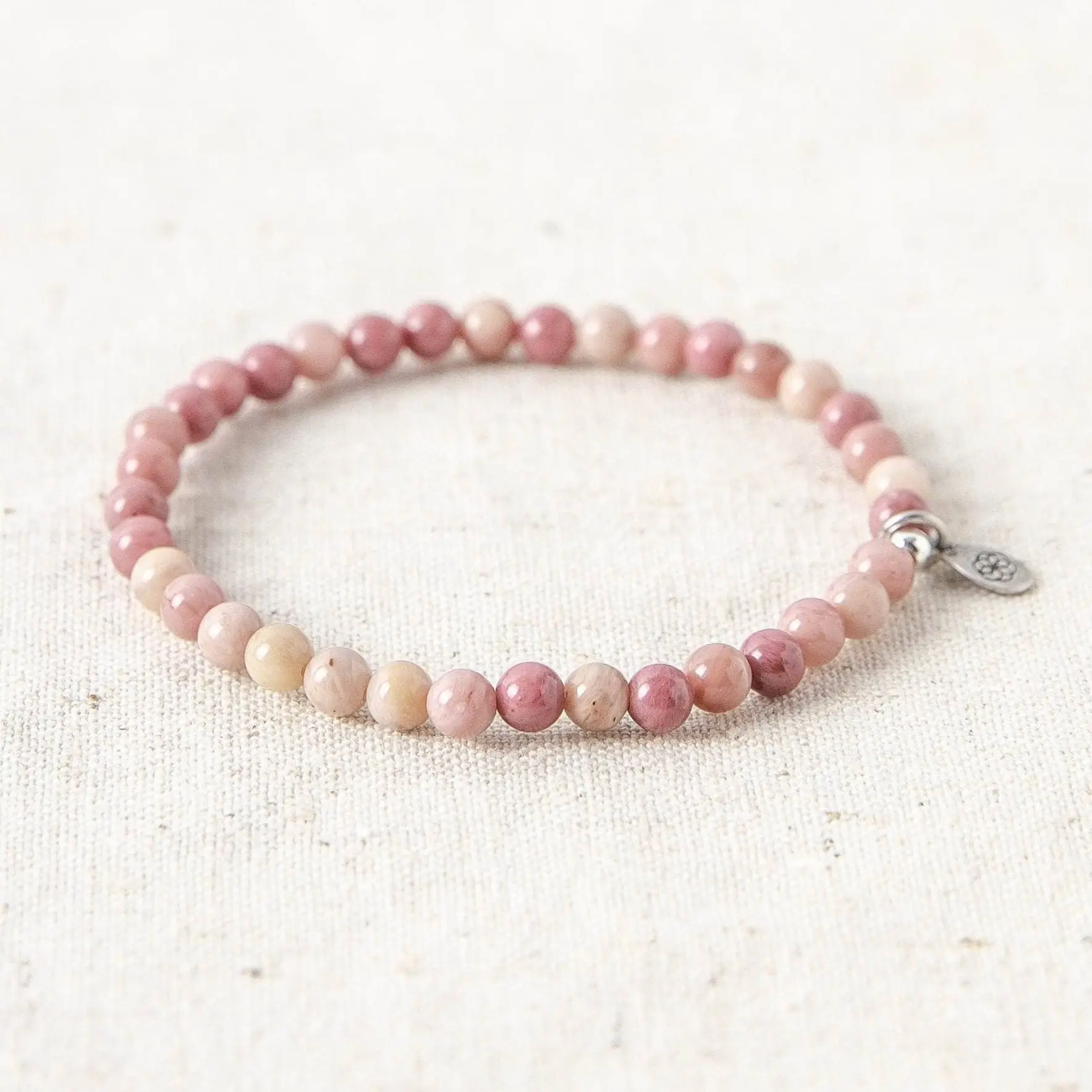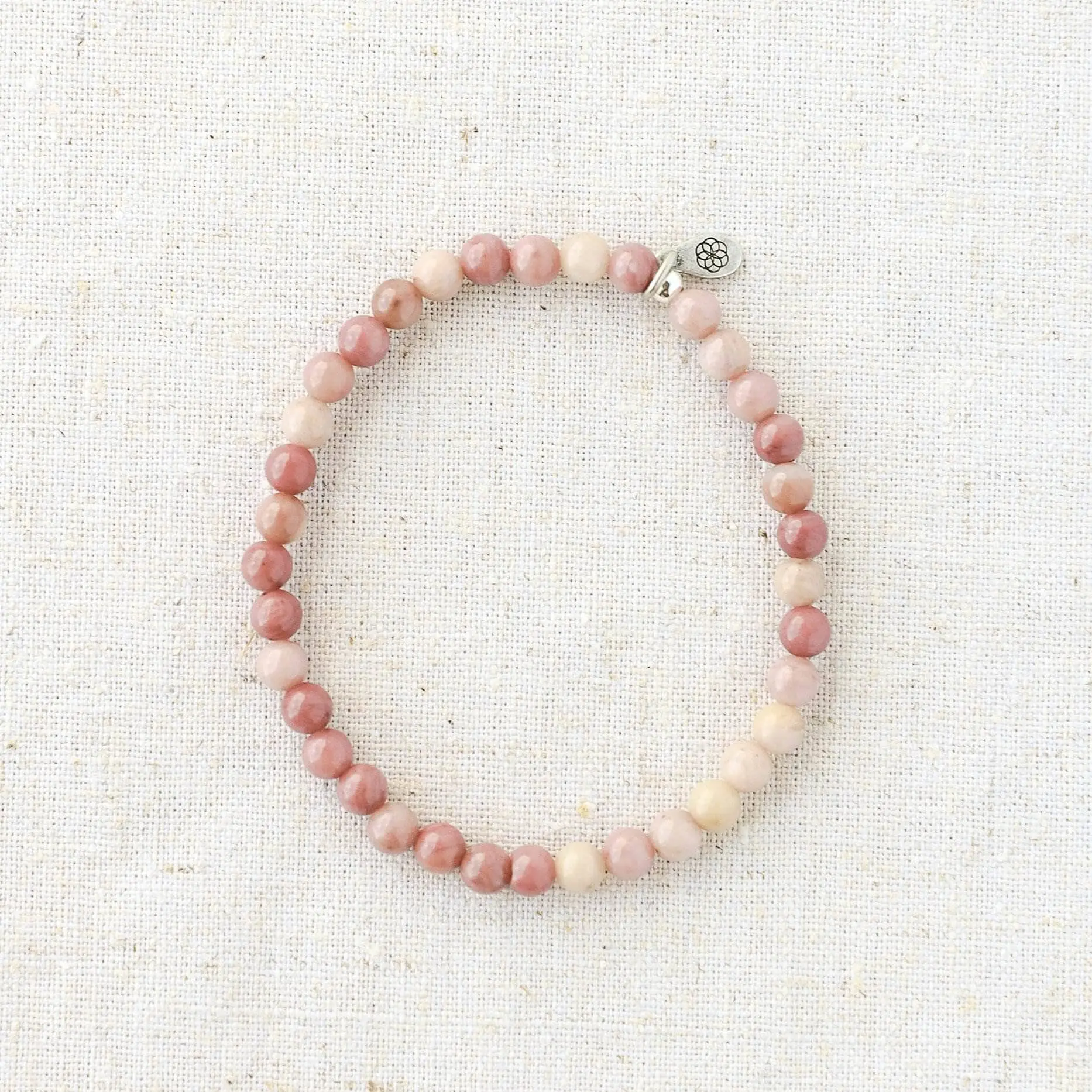 The color of the dawn, rosy pink, and soft cheeked, the Rhodonite Energy Bracelet is a vision of pure relaxation, cozy cashmere days, and the gentle joy that comes with forgiveness and a fullness of heart.