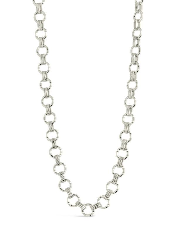 This one’s all about structure. Featuring a series of polished ring links bound by textured connectors, this chain gives a subtle nod to industrial edge—without losing its polish. Perfect worn solo or stacked with slimmer strands for contrast.