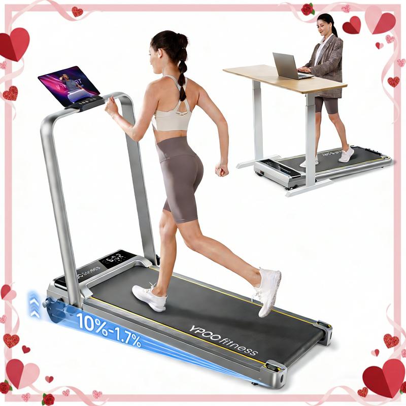 【Folding Walking Pad with APP】Connect the YPOOfit APP to our foldable treadmill with incline for an interactive workout. Use the phone holder on the portable treadmill to watch videos. Smart Ypoofit APP tracks your progress and connects you with other users, making this walking pad treadmill with handles perfect for home fitness.