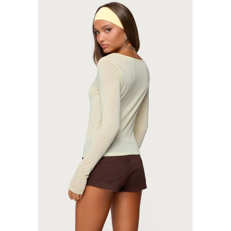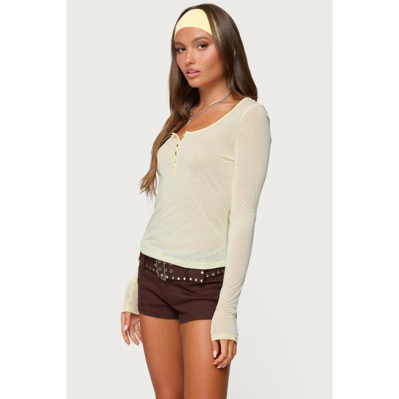 Obsessed with sheer tops recently 💫 @Edikted #sheertop #longsleevetop #basics #ediktedtop #butteryellow