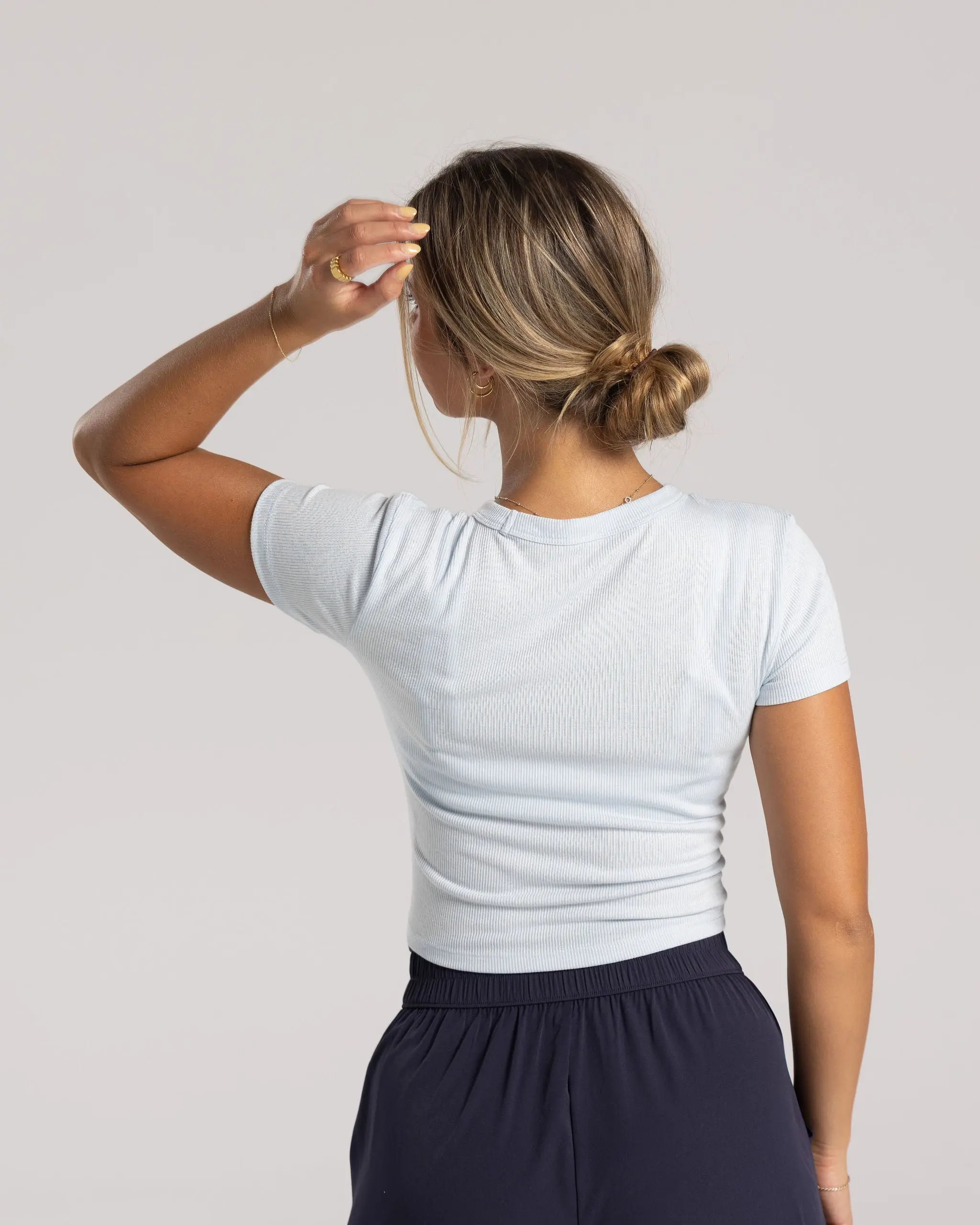 One word. Classic. You'll reach for this super soft, lightweight Rib Baby Tee again and again because - truthfully - it just feels good on. The mid-length fit skims your body without feeling clingy, making it easy to wear all day long. With a classic crew neck and short sleeves, it's simple, versatile, and always a solid choice, whether you're layering it up or wearing it on its own.
