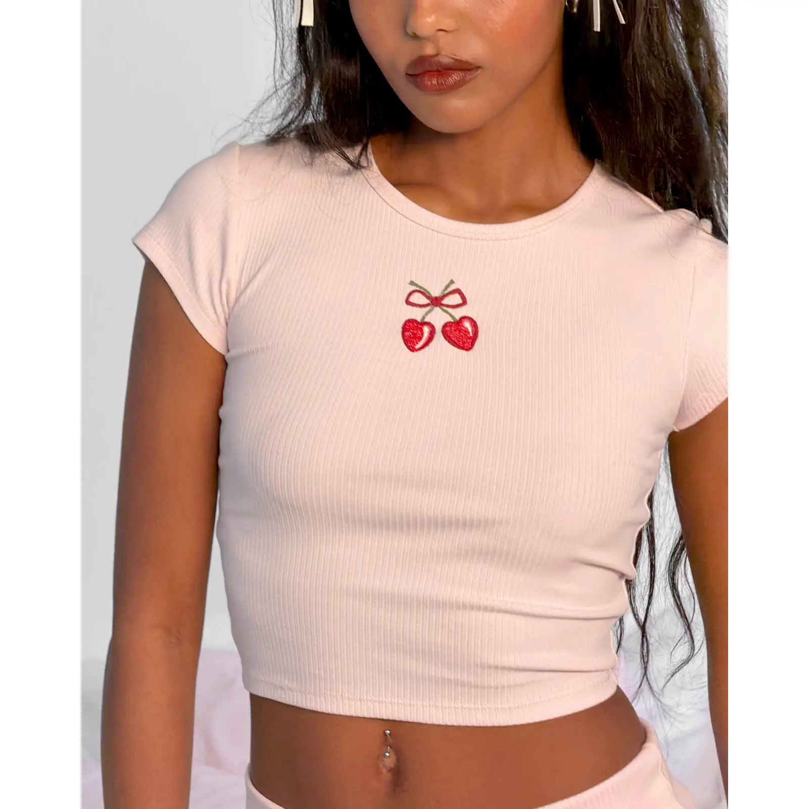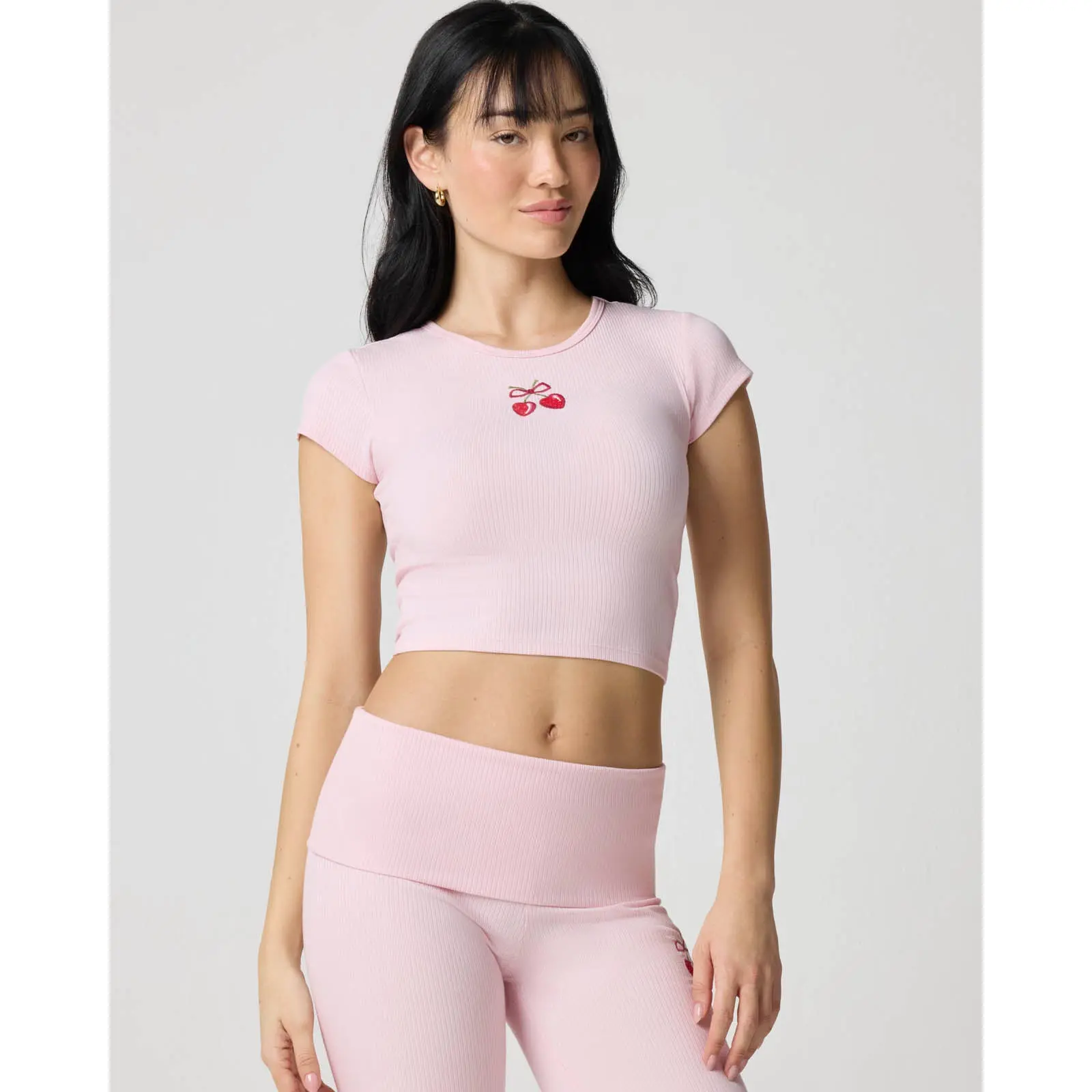 Our soft, body-loving rib baby tee features a cherry bow embroidery for the sweetest detail on top.