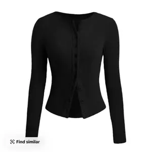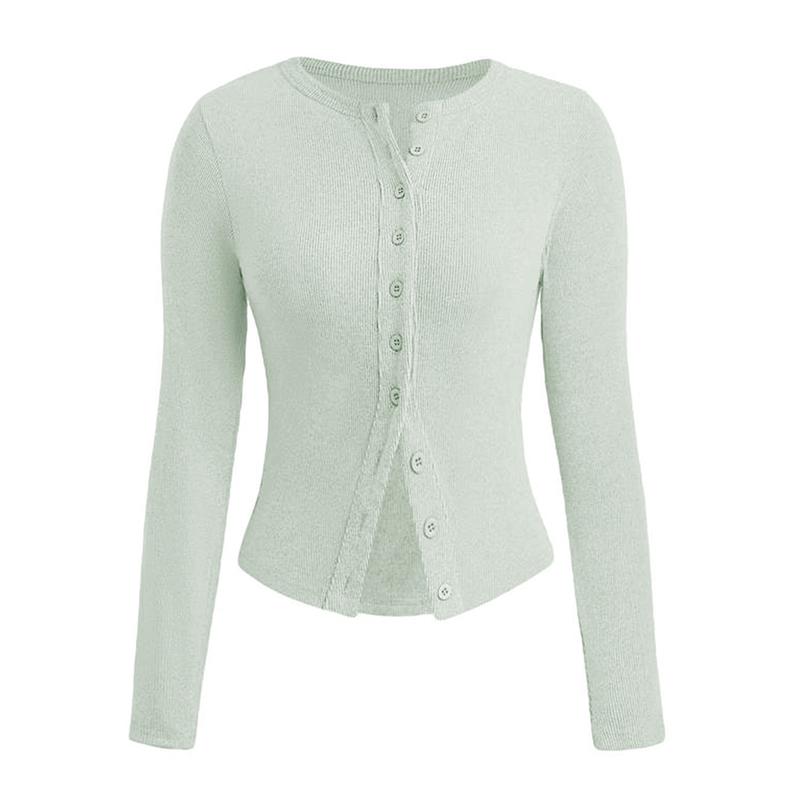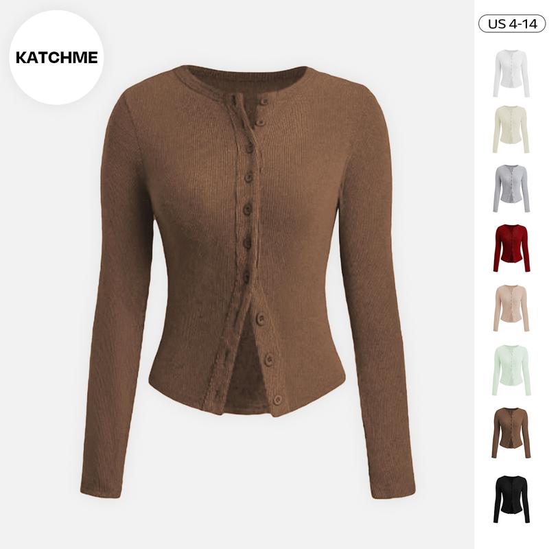 KatchMe Women's Solid Button Front Ribbed Cardigan, Casual Long Sleeve Round Neck Knitwear for Fall & Winter