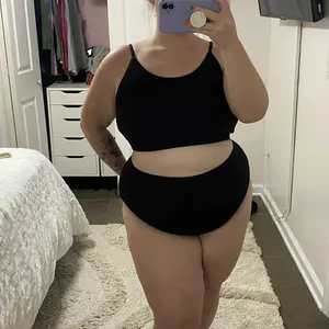 SIZE UP! I’m normally a xxl or 1x in tops but a 2x in shorts. I bought this in a 3x and it fits great. The bottoms are high waisted and the top is long enough in the back to hold everything in. The material is also very nice and thick, not see through or unsupportive at all