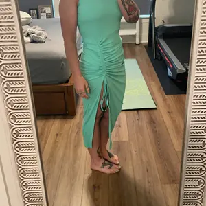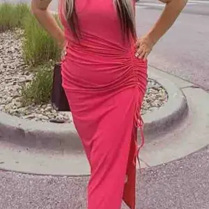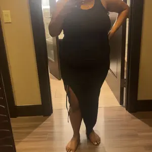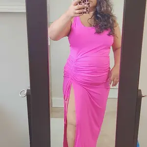ยทSilhouette & Fit: Sleeveless U-neck design with a side drawstring allows adjustable ruching, creating a slim, tailored silhouette that enhances natural curves and adds subtle shape to the mid-calf length dress.