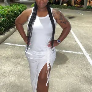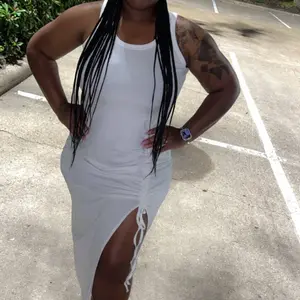 Chicme Ribbed Seaside Vacation Sleeveless Skirt Drawstring Ruched High Slit Dress