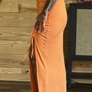 ยทDesign Details: Minimalist ribbed texture paired with a side slit and adjustable drawstring detailing delivers a casual yet chic aesthetic, combining comfort with a touch of refined style.