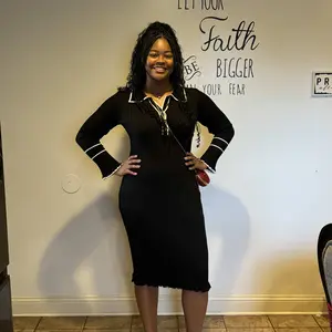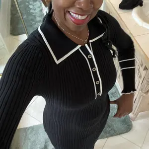 ·Features: The sweater dress includes a contrasting color lapel collar and V neckline, adding a touch of elegance. The button-down front gives it a classic yet trendy look, suitable for both casual and semi-formal occasions. Ruffled bell sleeve openings and hemline contribute to its sophisticated flair.