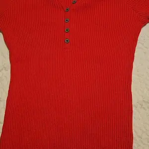 Love the color it's a bright red and the buttons are functional very soft stretchy amazing price can wear this with anything dress it up or casual beautiful shirt