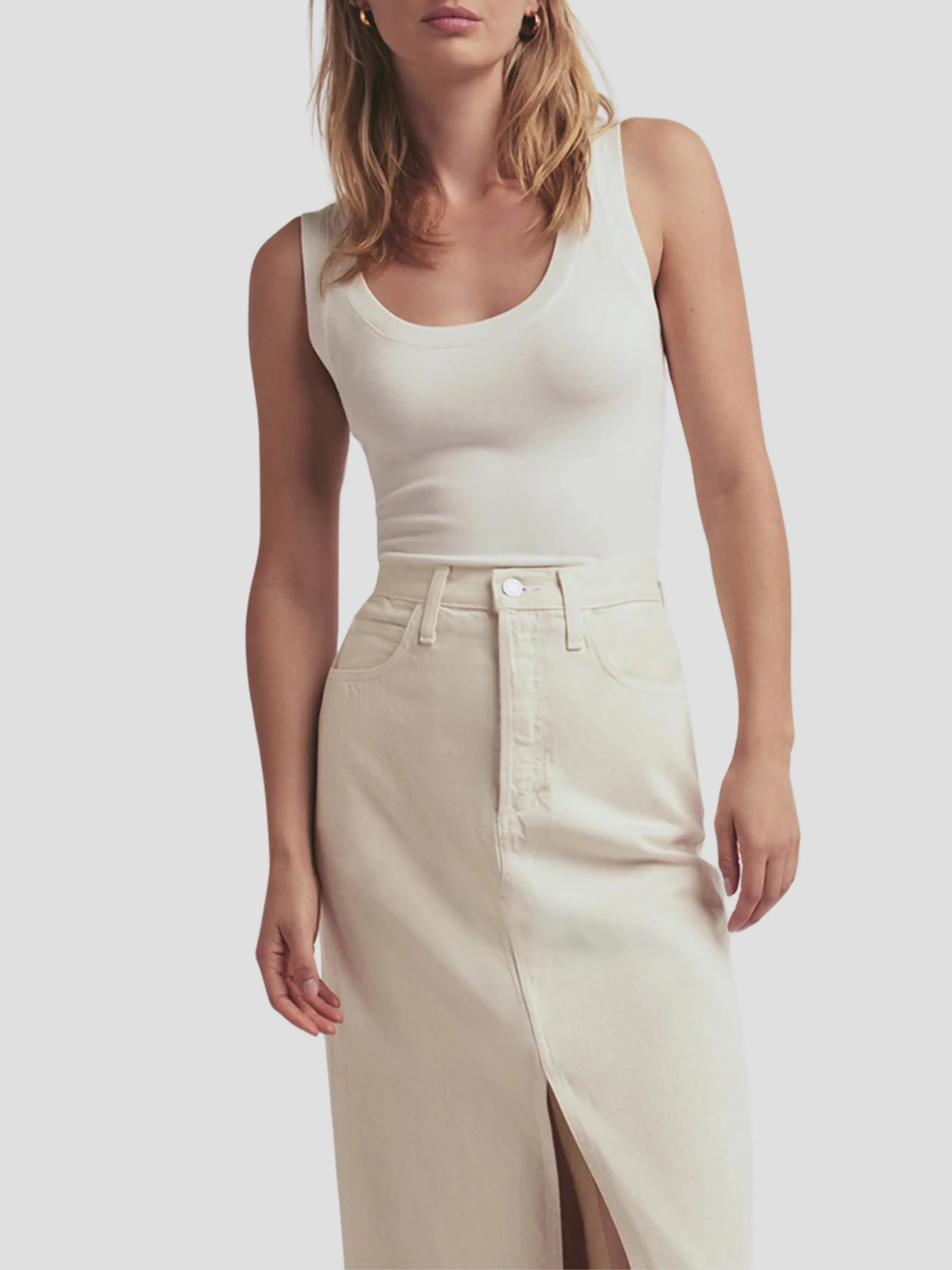 The Ribbed Tank in White from Favorite Daughter is a must-have for any wardrobe. Its timeless cut and rounded neckline make it a versatile and stylish choice. With added stretch, it will maintain its shape wear after wear. Made from a soft and eco-friendly modal blend, it's also incredibly comfortable and breathable. Upgrade your basics with this sustainable tank.