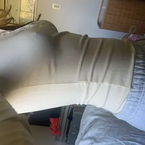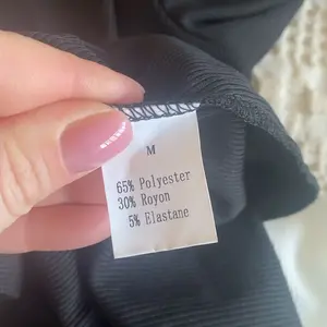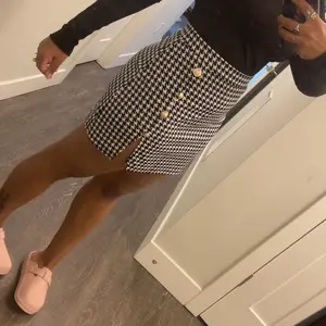 Material is nice for the most part. It’s cute and stretchy. It’s a little thin and transparent, so I would layer sweaters and such with this. I tested it with a black bra and you could see it. The cream color buttons are a nice touch tho