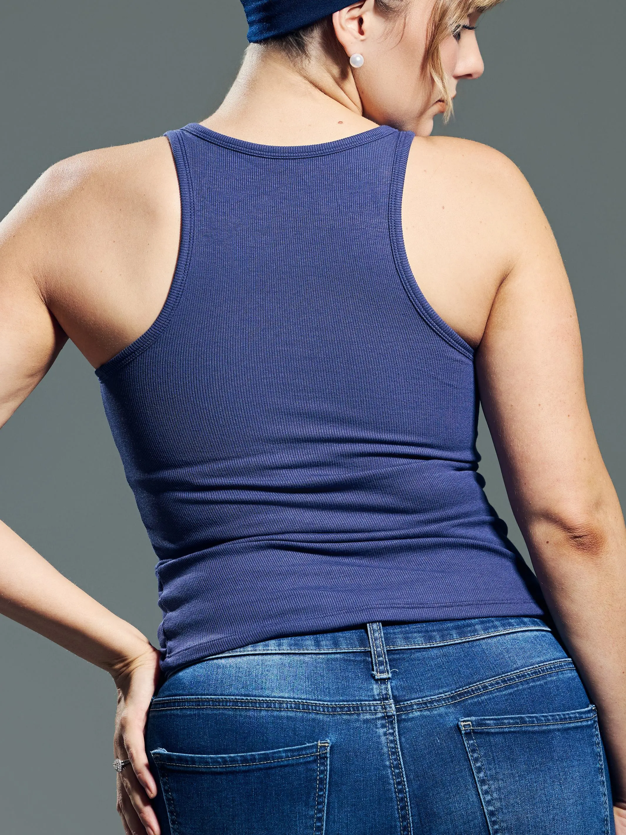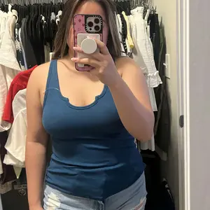 Beautiful tank for the summer. Love this marine blue color. It’s such a flattering cut.