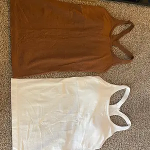 Brown is Lu*lu and white is the du*pe. I recently purchased the brown Tank In a womens size 8 (normally I wear a XS-S in clothes/32B in bra size or a size small to medium in a sports bra). I ordered the white in a size Large! Currently I am 22wks pregnant as well. The built in br