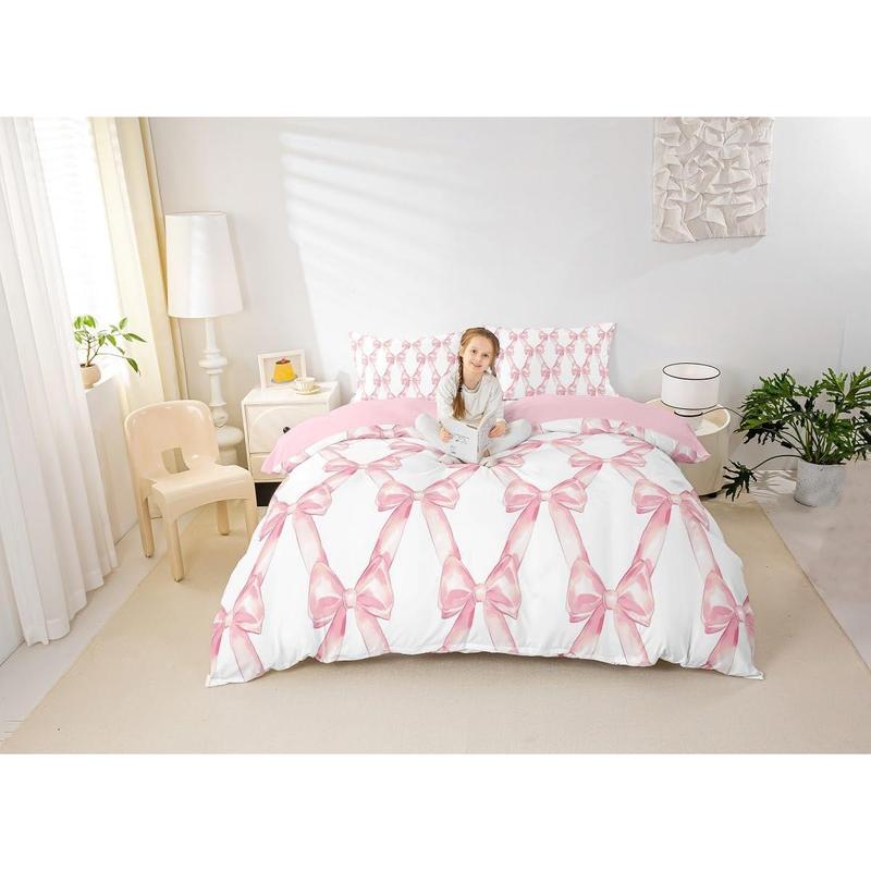Ribbon Bow Bedding Set for Girls Teen,Women,Pink Bowknot Bedding Comforter Sets, Cute Fantasy Princess Comforter Set,Kawaii Bow Tie Bed Duvet Set