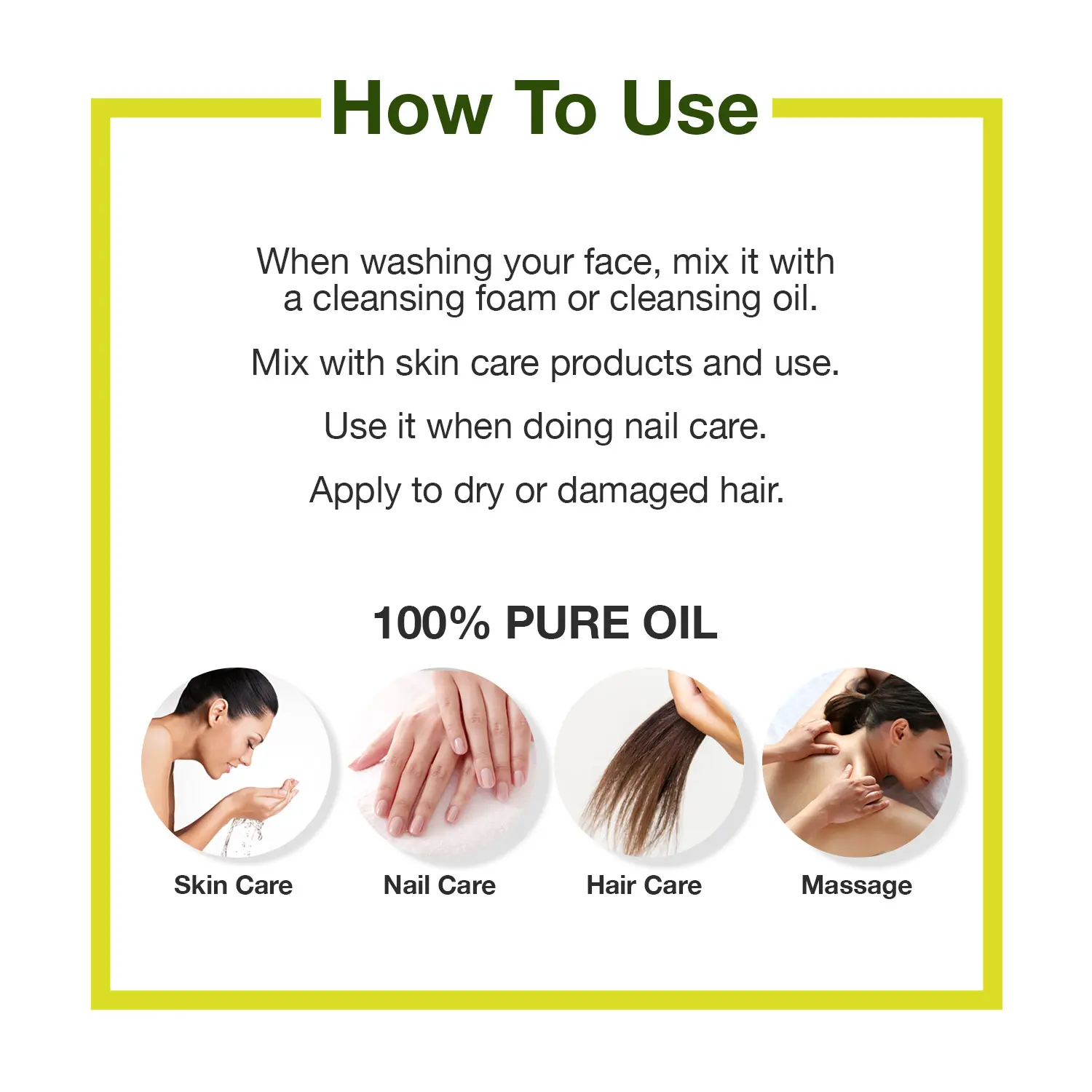 Use 2-3 drops of oil on your fingertips and rub them together and massage onto a clean and dry face, neck, skin or scalp