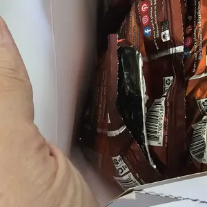 Box arrived damaged and open. All 3 boxes inside were crushed and some of the mini bags were open.