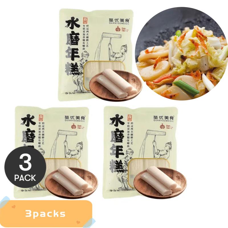 5. QuanYou Ningbo Water-Milled Rice Cakes – 3 Packs (17.64 oz 500g Each) | Chewy & Soft, Traditional Chinese Zhejiang Specialty Snack