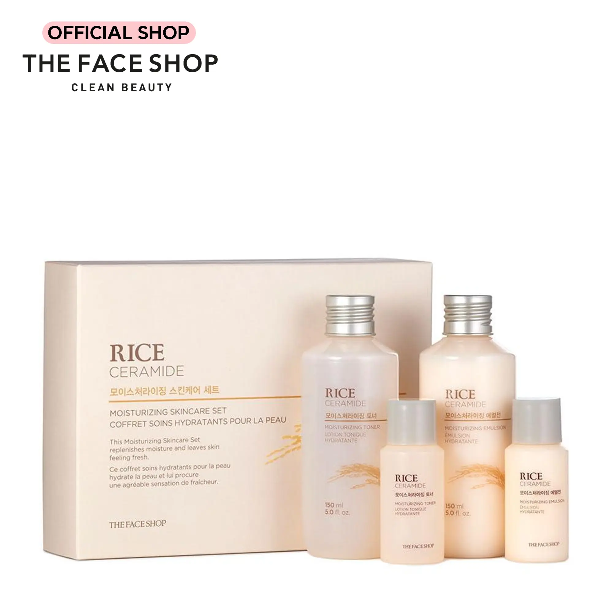 Discover the power of nature’s best kept secret with The Face Shop’s Rice Ceramide Moisturizing Skincare Set.