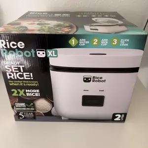 Introducing the Rice Robot, the mini rice cooker that makes perfectly cooked rice accessible to everyone. With a 1.2L or 2L capacity, this compact rice cooker is ideal for small kitchens, dorm rooms, and on-the-go cooking in RVs. Designed with advanced click-and-cook technology, the Rice Robot provides controlled heat, ensuring your rice cooks evenly without the risk of overcooking or burning. Featuring a convenient auto keep-warm function, a non-stick, dishwasher-safe ceramic pot, and versatile cooking accessories, the Rice Robot brings simplicity and ease to your kitchen.
