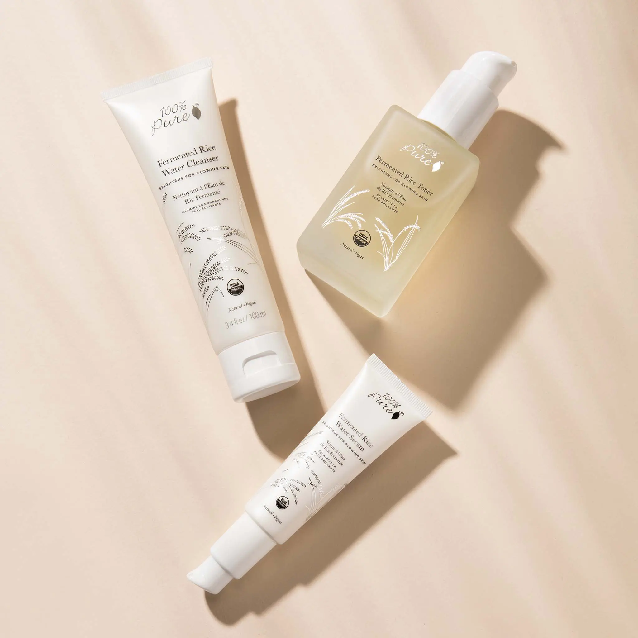 Did you know sake is made from fermented rice? 🍶🌾 Our fermented rice skin care is made for brightening your skin with the powers of kojic acid 🌟 #100percentpure #cleanbeauty #fyp #cleanskincare #NaturalSkincare