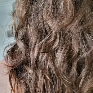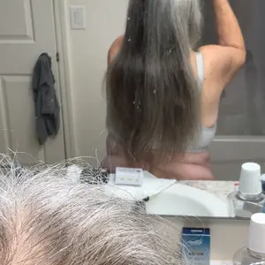I'm 58. My hair is dry, coarse, curly, red, and waist length. Use henna on roots every 5 weeks. Hairloss.