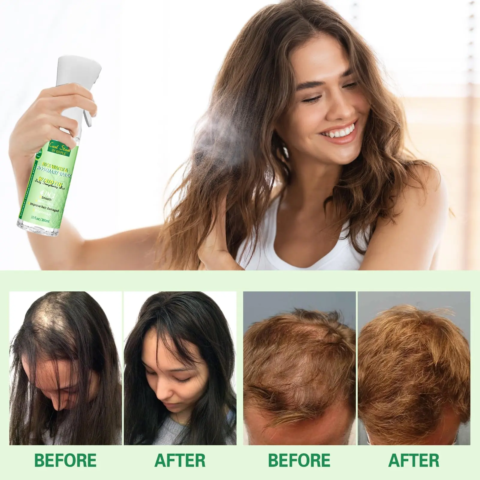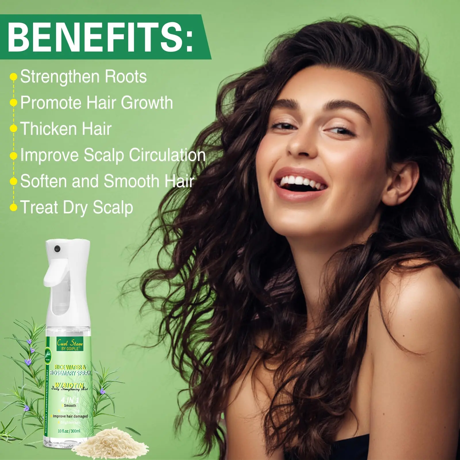 ·Ancient Secret: Harness fermented rice water hair spray traditions with a science backed twist. Our rosemary infused elixir deeply hydrates scalps, and accelerates growth cycles. Ideal for thinning hair or post-damage recovery—revealing bouncy, shiny hair