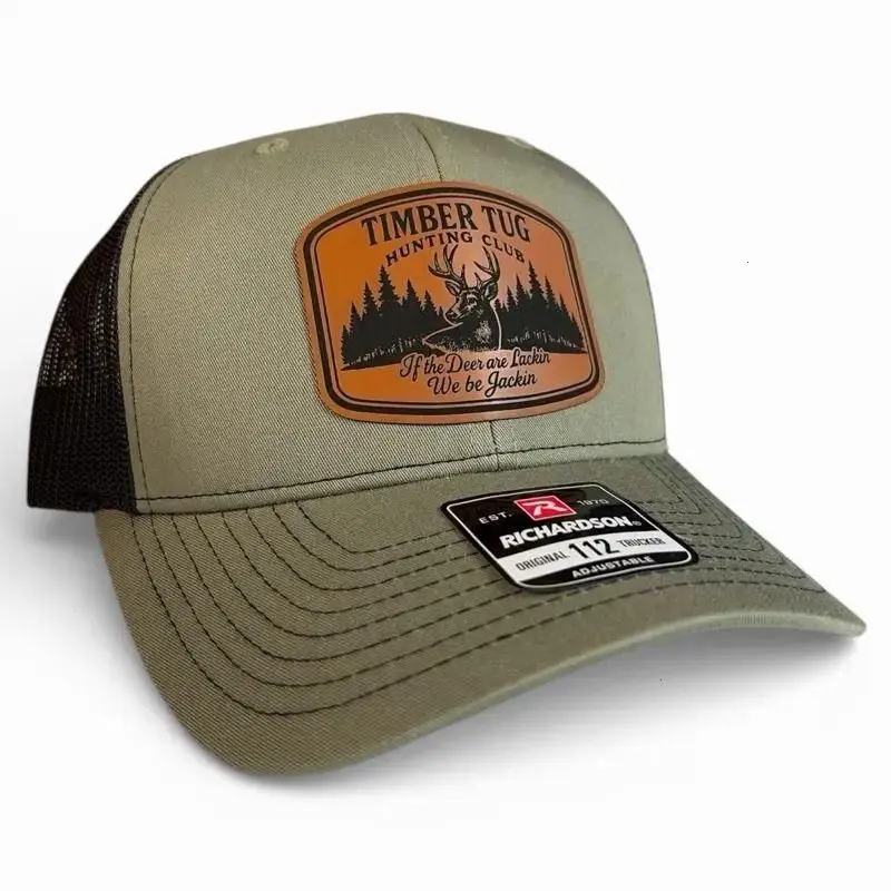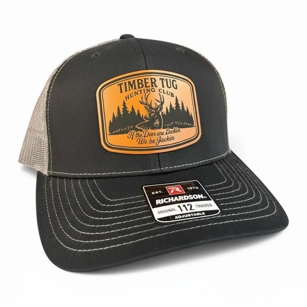 Timber Tug Hunting Club Trucker Hat with Deer Patch, Vintage Outdoor Mesh Cap, Adjustable Richardson 112 Style Hat for Hunters & Outdoorsmen