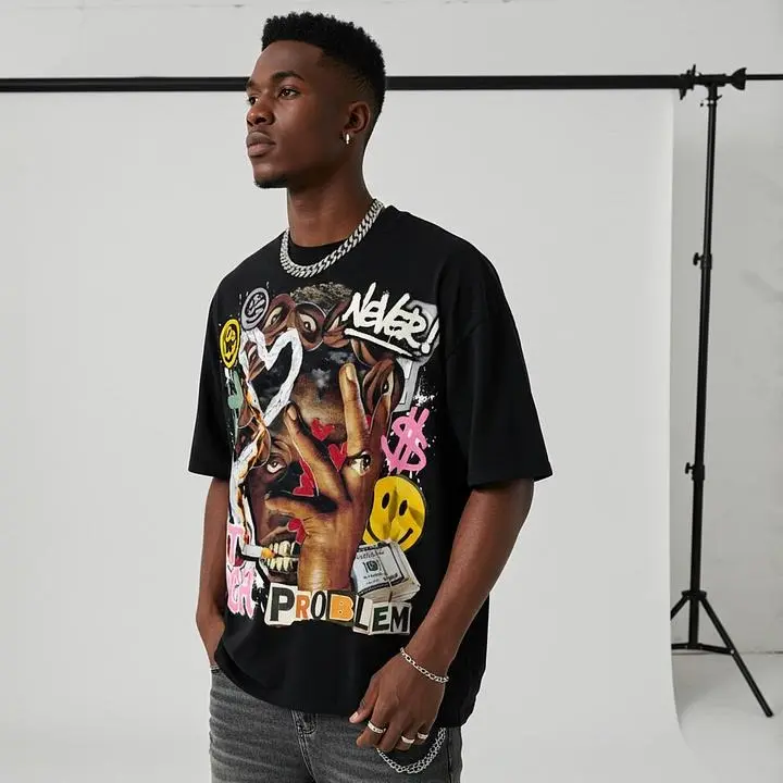5. Sopula Studio Men's Streetwear Richer Our retro abstract patterns, cotton casual round-neck T-shirts Black Menswear