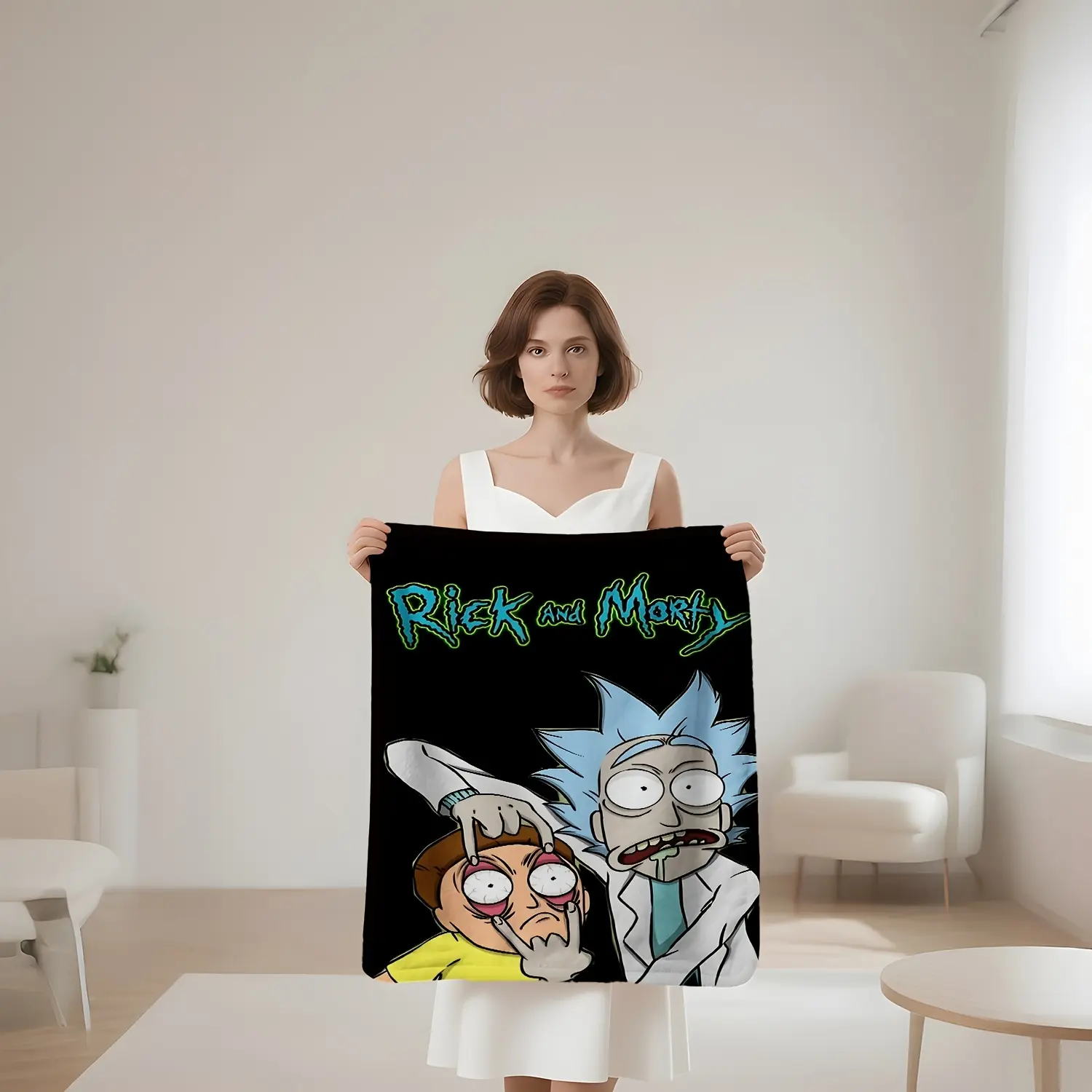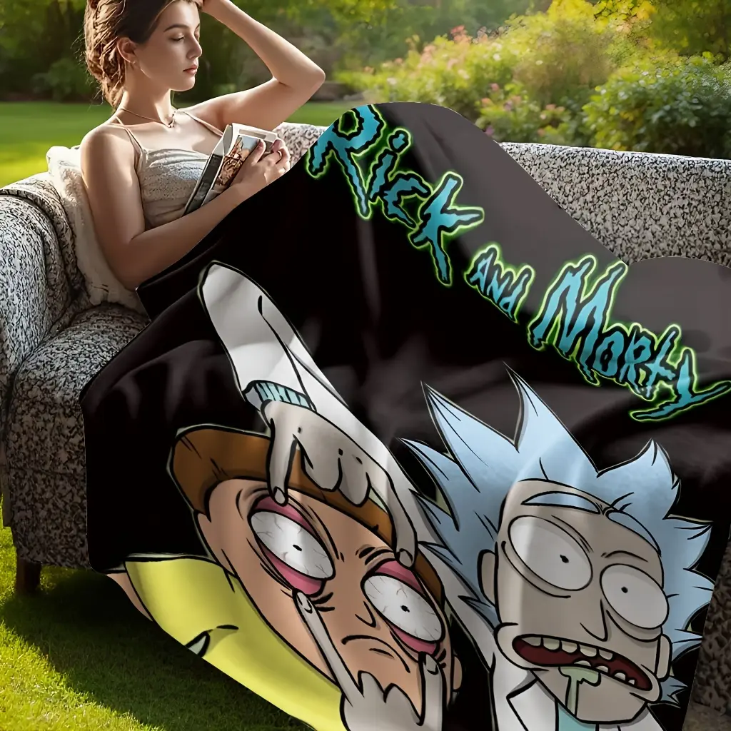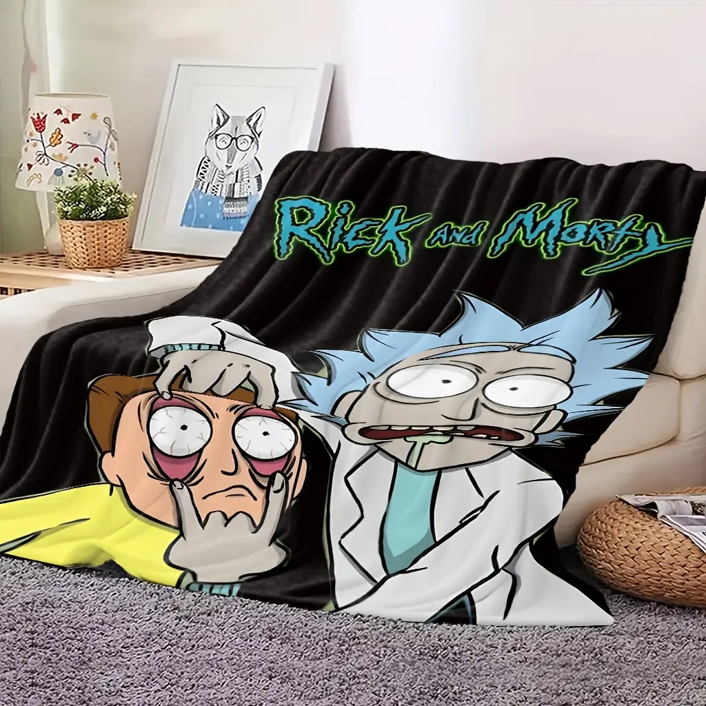 Rick And Morty Pattern Wool Blanket with Official License from Warner Bros., Suitable for All Seasons, Perfect as a Small Cover for Sofas and Beds, Soft for Home, Car, and Office Use, Ideal for Living Rooms, Sofas, and Beds.