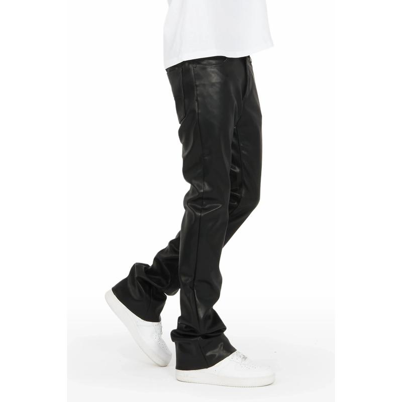 Ricky Black Faux Leather Stacked Jean