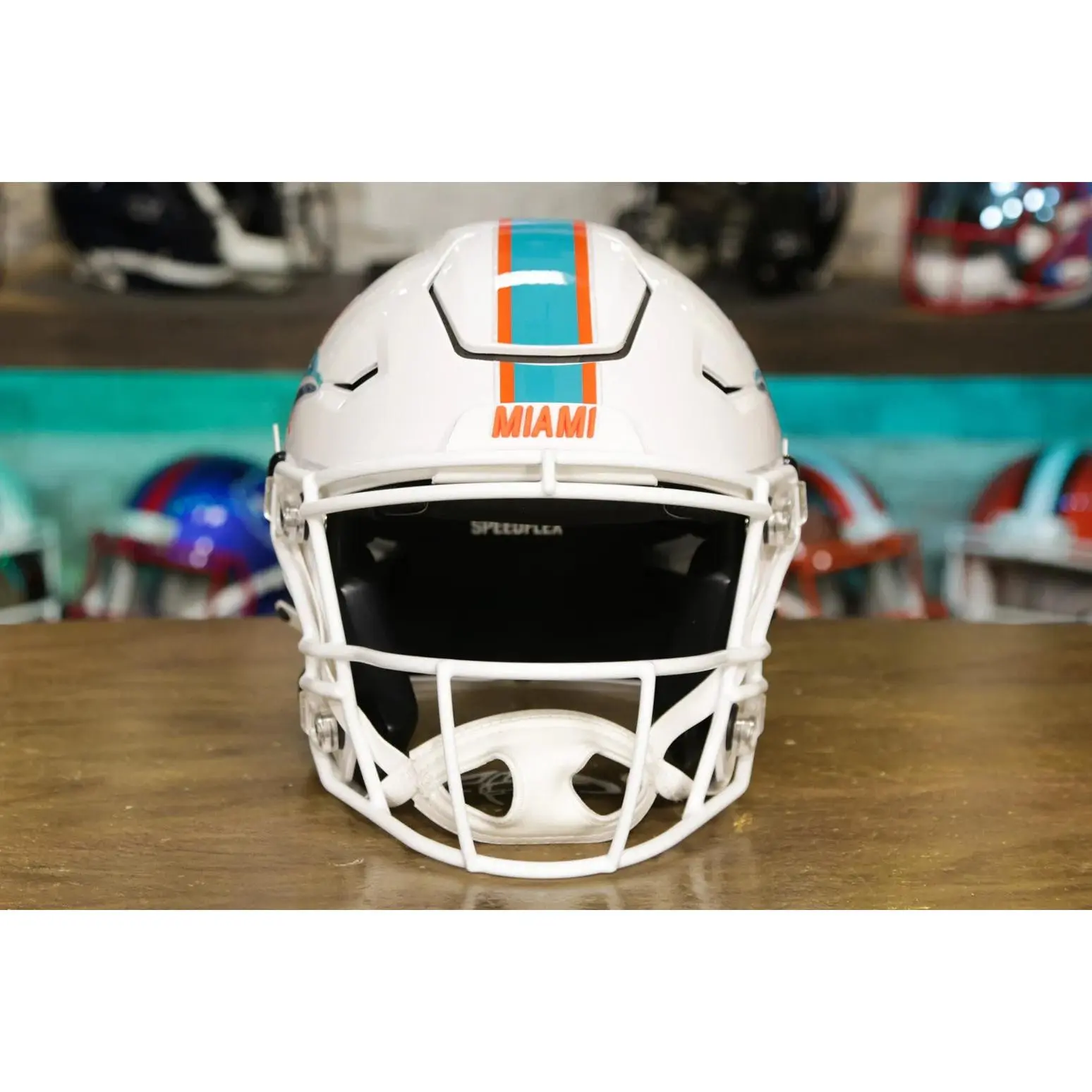 The Miami Dolphins Riddell SpeedFlex Authentic Helmet is made for the true Dolphins fan!