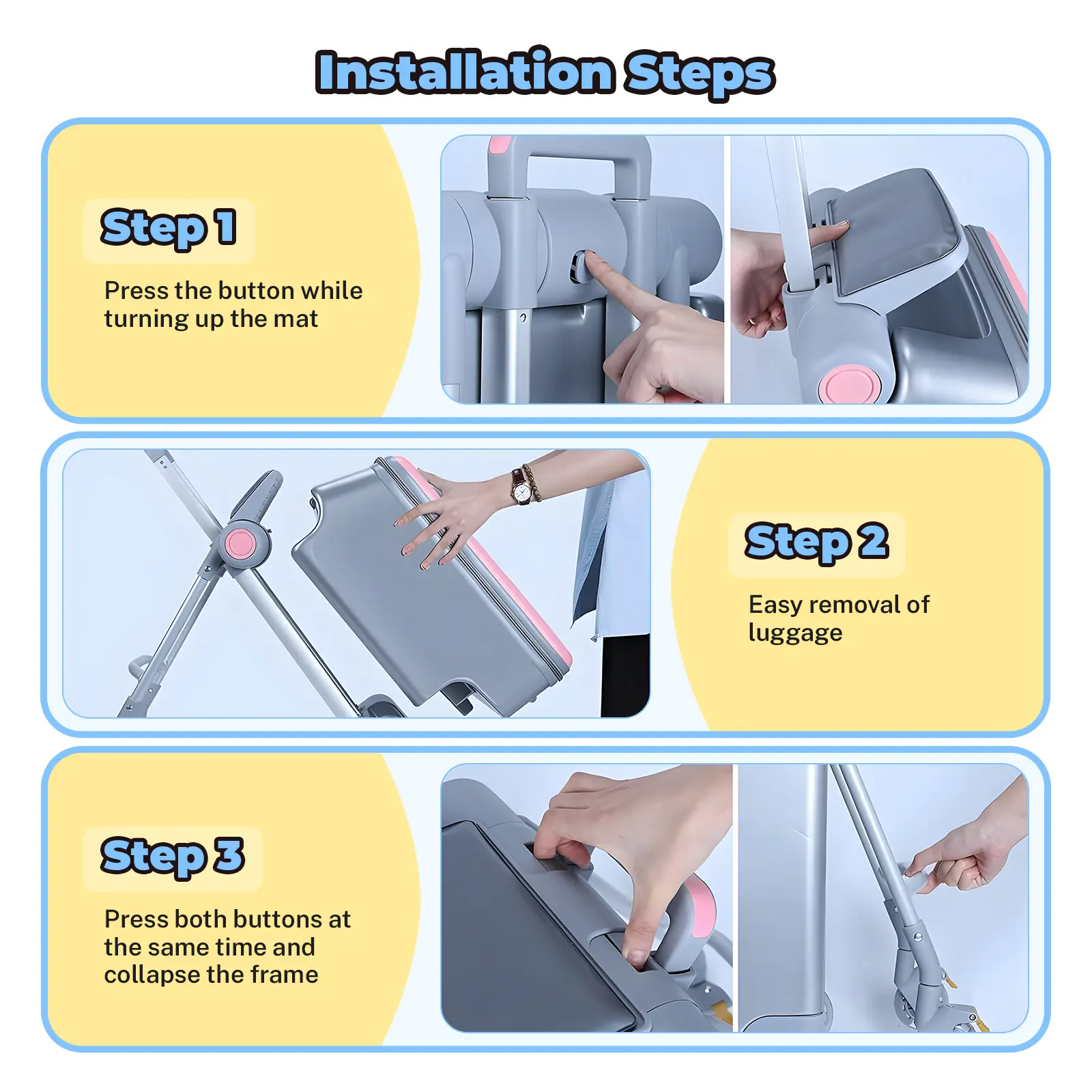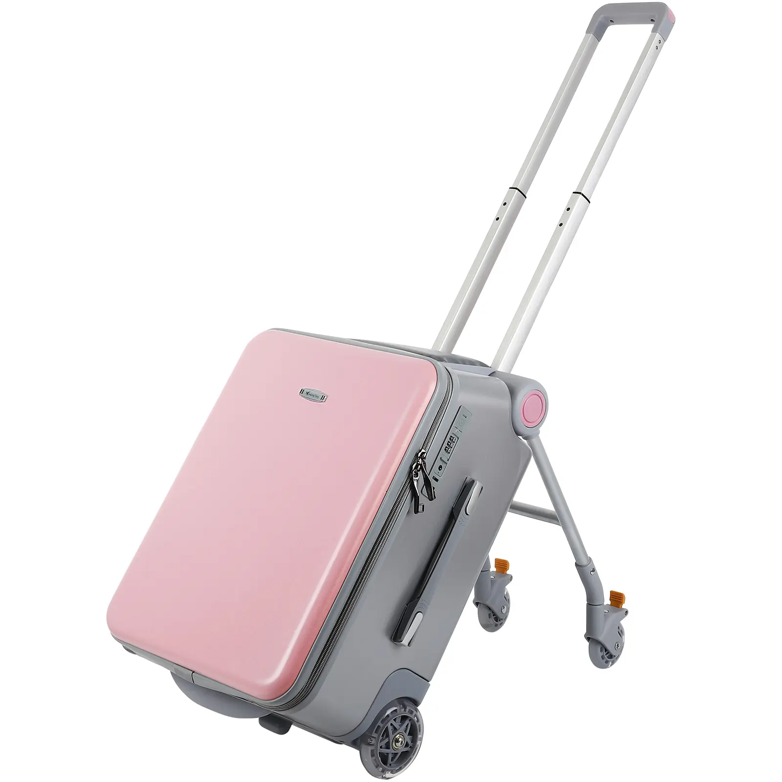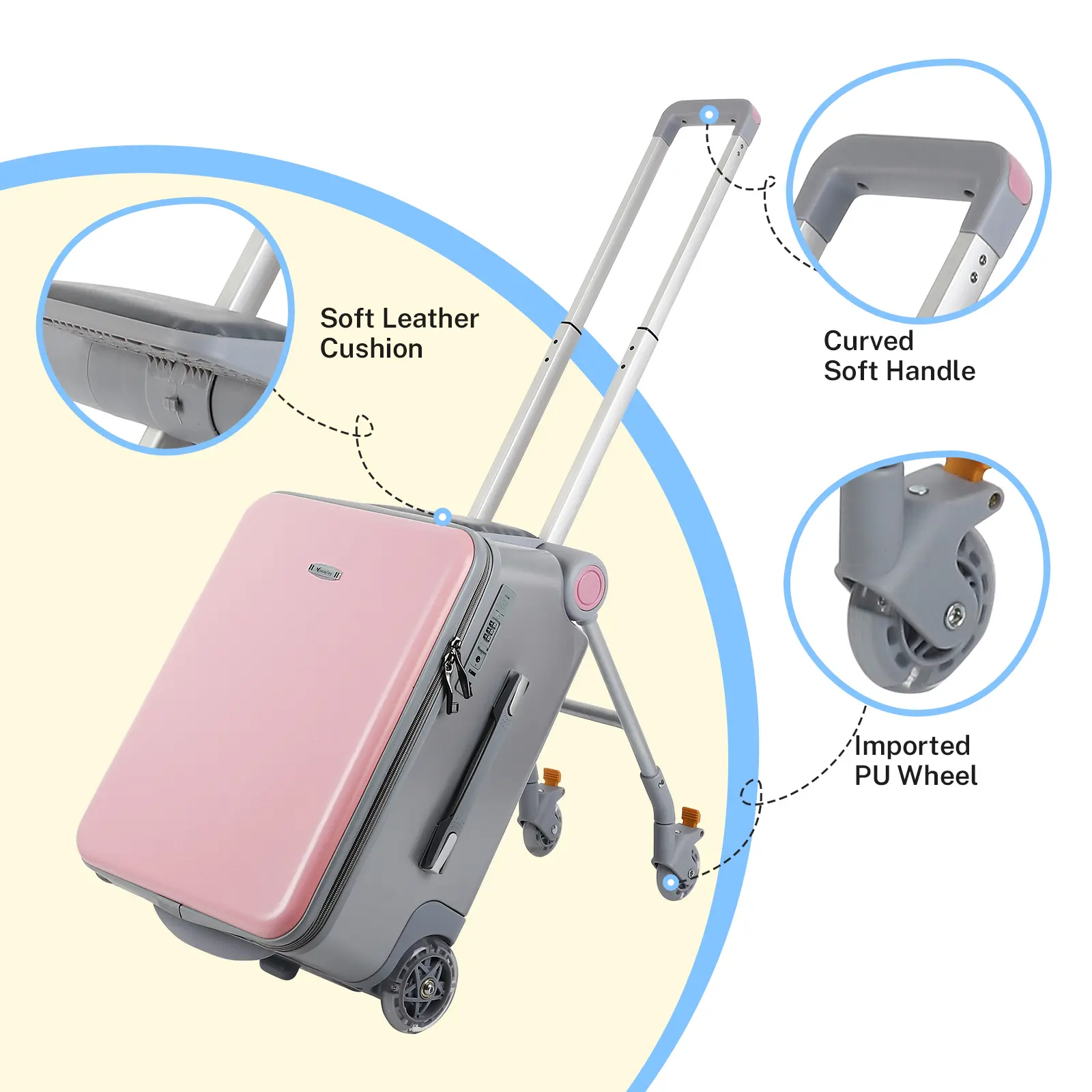 ·【Convenient 2-in-1 Functionality】The ride on luggage for you ages the trolley to detach from the suitcase quickly. Whether loading it up for a shopping trip or caring for a tired child, this versatile luggage with seat adapts to various scenarios, making your travels hassle-free.