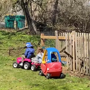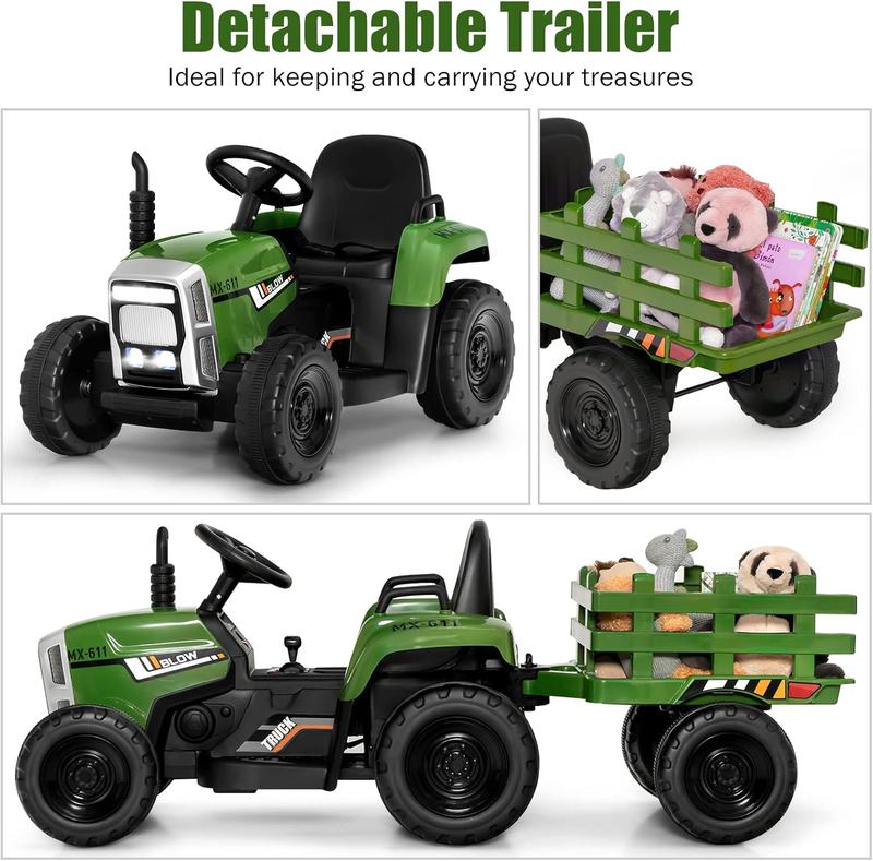 ·【2-in-1 Tractor with Detachable Trailer】The large trailer lets kids transport toys, flowers, or snacks around the yard. The detachable design makes it easy to remove the trailer when not needed, fostering fun activities and parent-child interaction.