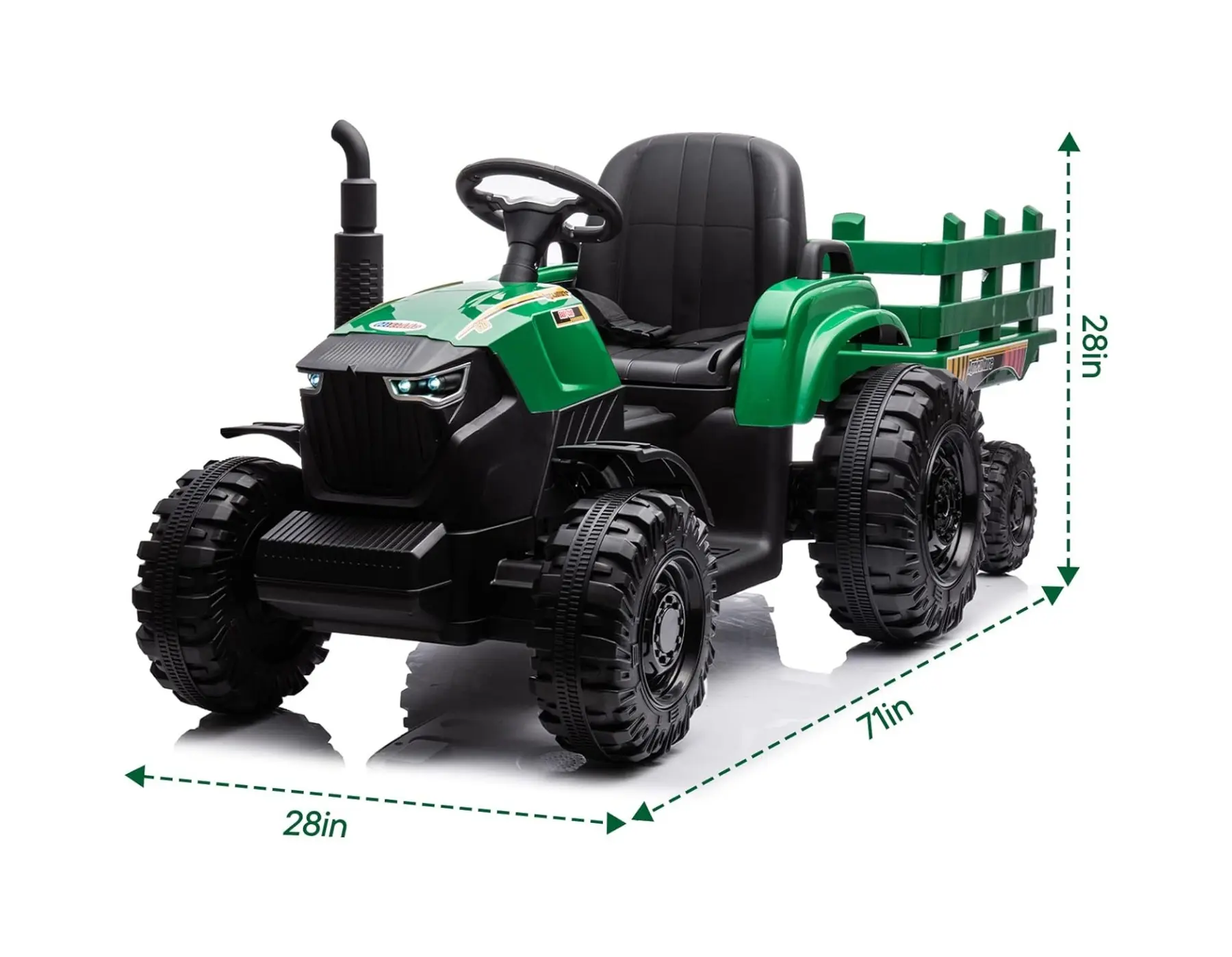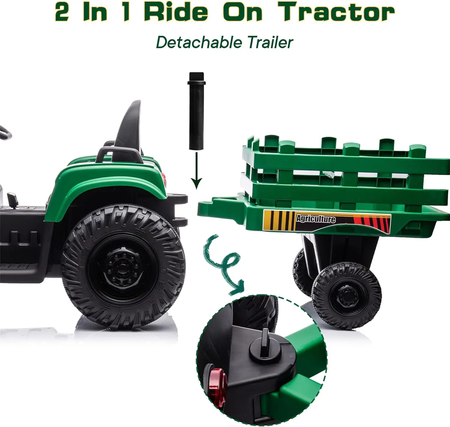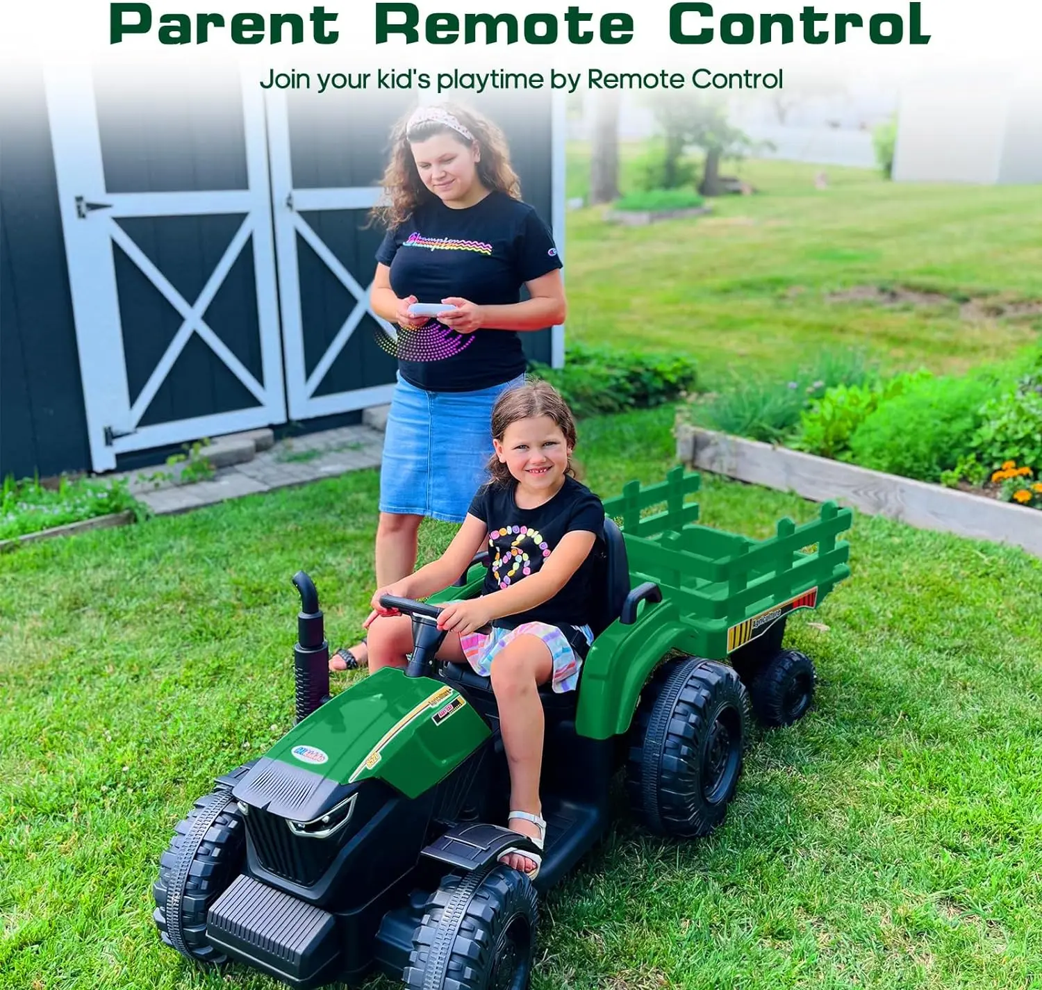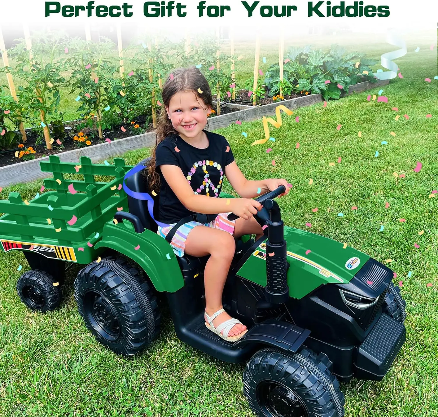 ·DETACHABLE LARGE TRAILER: This kid's tractor ride on comes with a large trailer that kids can use to carry toys, weeds, flowers, and more. Equipped with an upgraded strong spring suspension system, it can handle complex terrains and bear maximum loads of up to 88 lbs.