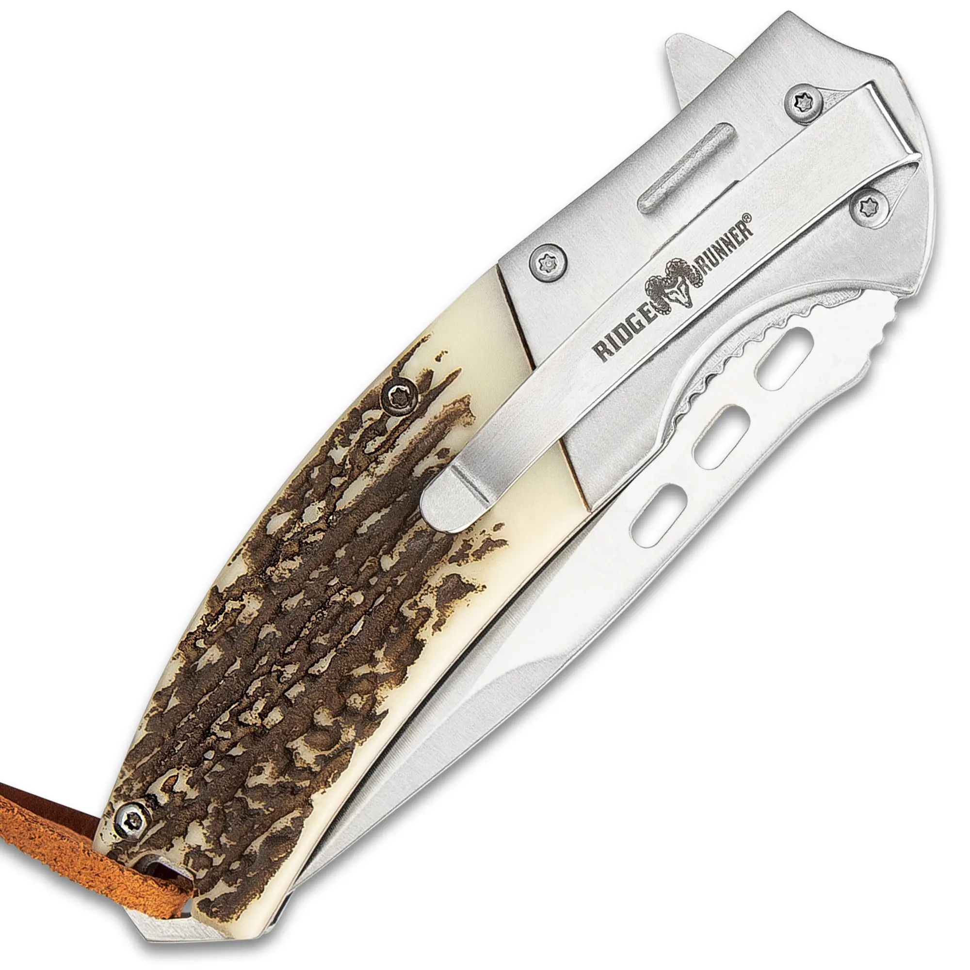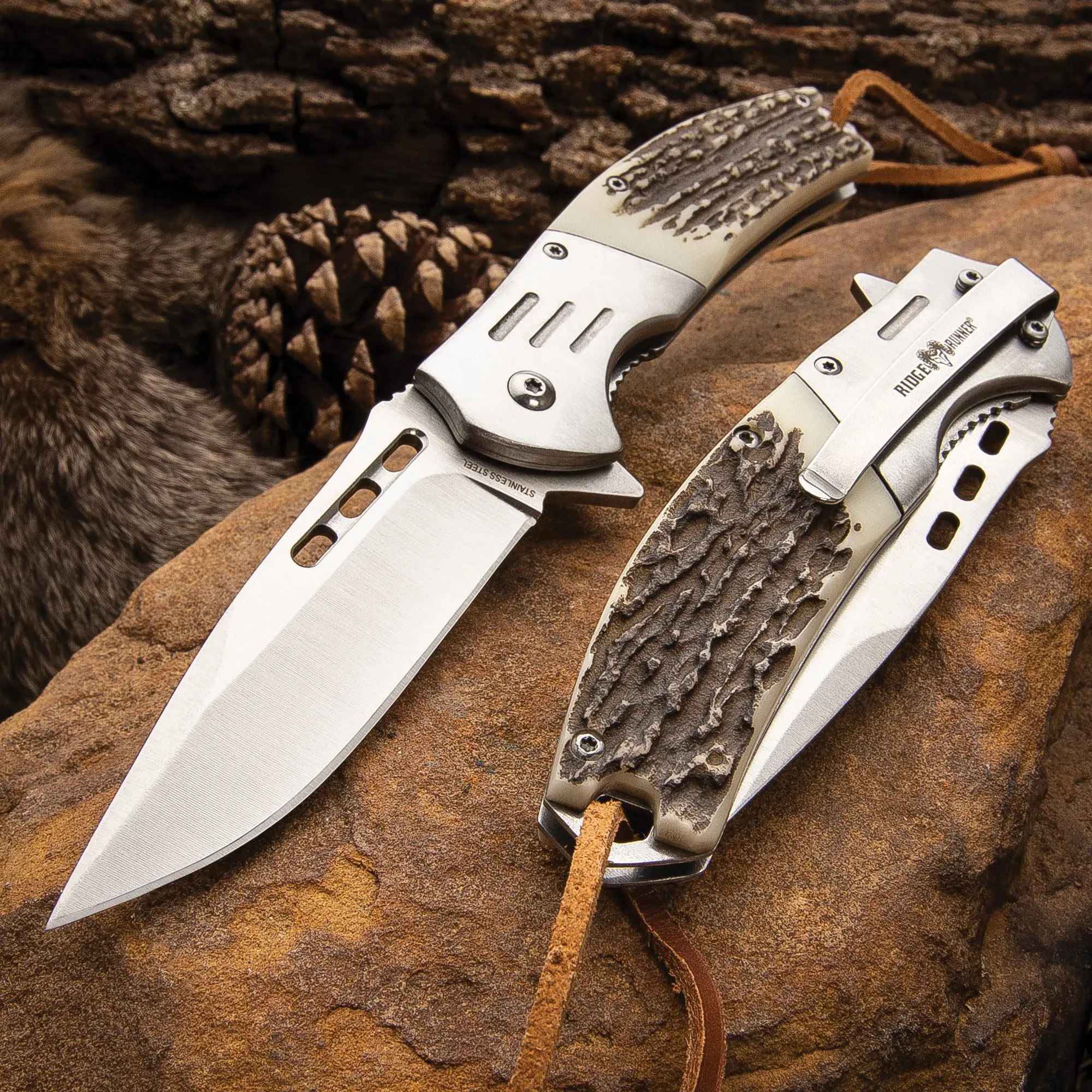 Ridge Runner Faux Stag Antler Assisted Opening Hunting Pocket Knife