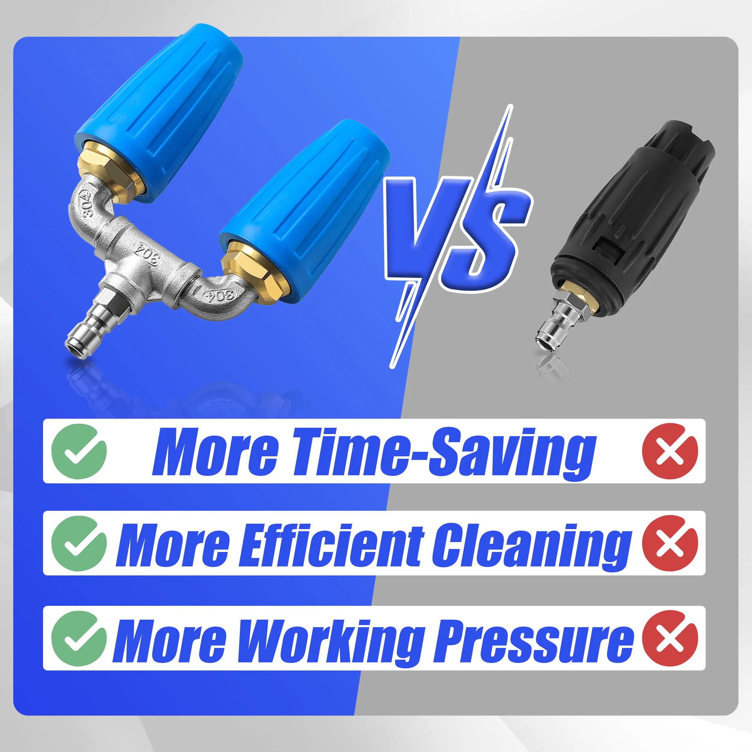 ·360° Rotating Pressure Washer Nozzle: This advanced design allows for a wider cleaning range, effectively cleaning larger areas of stubborn stains.