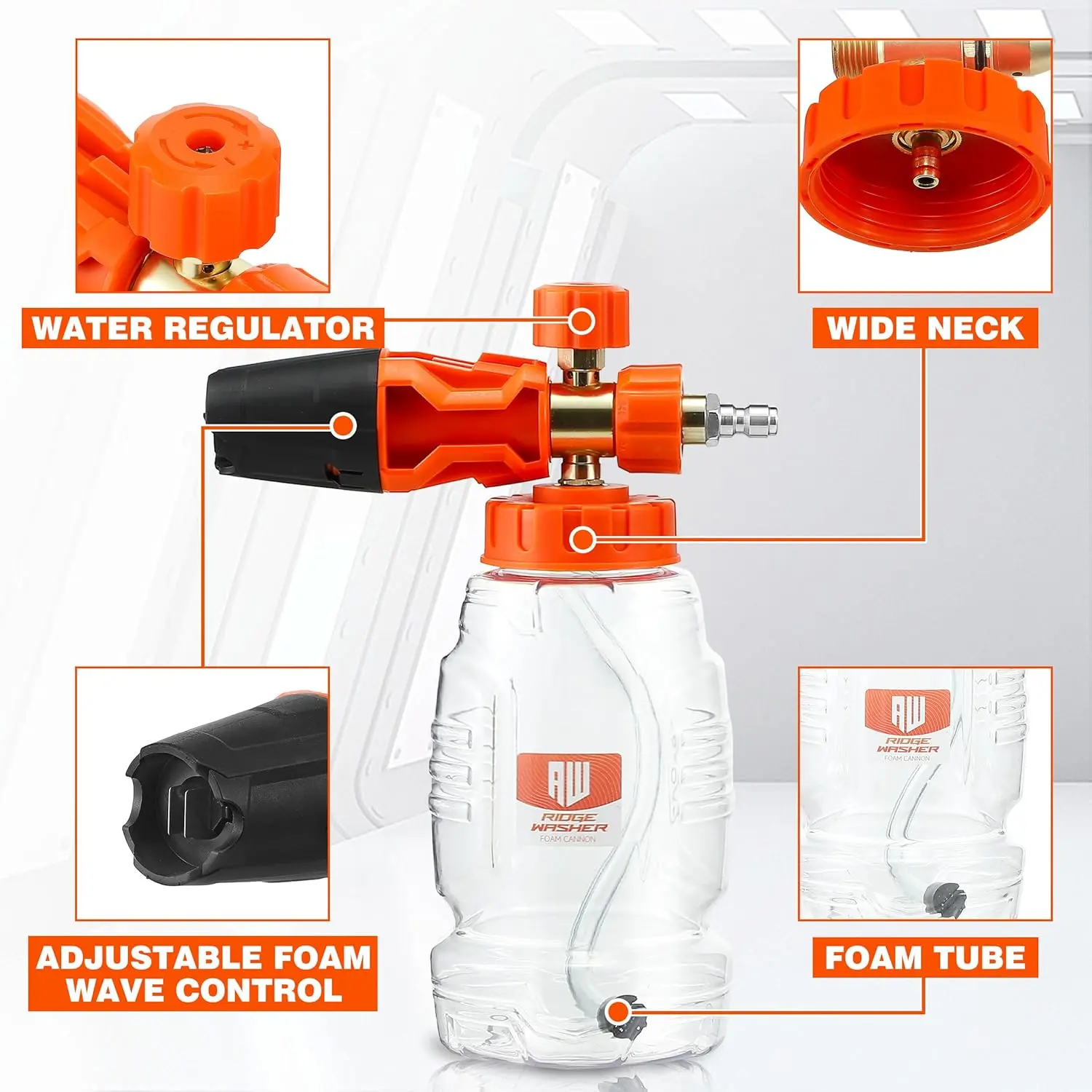 ·WIDE APPLICATION: Car foam gun is ideal for a variety of tasks, including washing motorcycles, cars, roofs, driveways, and siding. Foam blaster for pressure washer's also excellent for cleaning floors, windows, and detailing trucks or SUVs