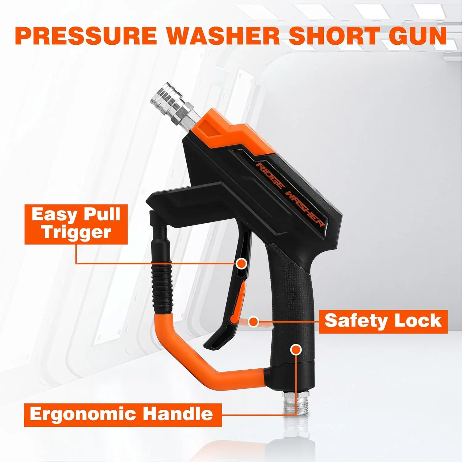 ·DURABLE AND LONG-LASTING: Made with stainless steel on the inside, pressure washer short gun is built to be wear-resistant, corrosion-resistant, and highly durable, ensuring power wash gun short won't break easily and will provide extended use