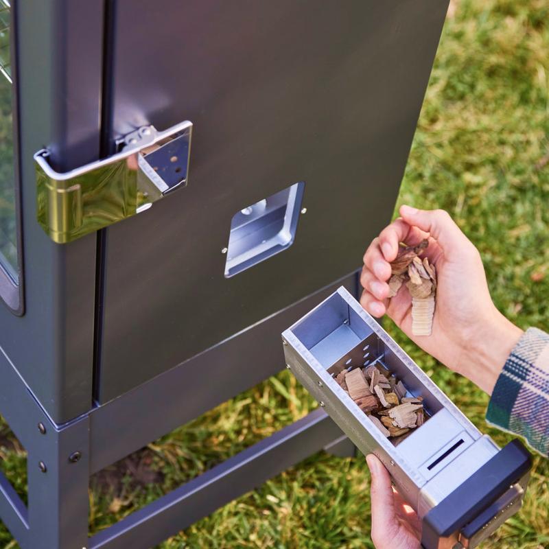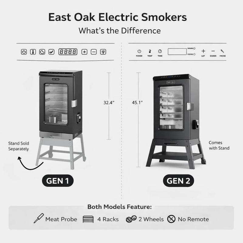 East Oak Ridgewood 725-sq smoker with window: Upgraded digital controls, built-in legs & turbo airflow. 800W power + set-and-forget ease. Smoke like a pro!