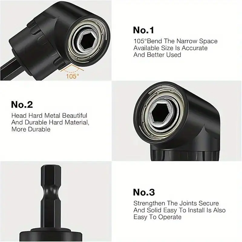 【Rotatable Adapters】: Includes three 360° rotatable socket adapters for enhanced maneuverability in tight spaces. 【Hex Shank Angle Adapters】: Features two 105° hex shank angle drill adapters, perfect for accessing challenging angles. 【Versatile Socket Sizes】: Set contains 1/4, 3/8, and 1/2 inch impact grade socket adapters to accommodate various tools. 【Bevel Drill Bit】: Comes with a 90° bevel drill bit, ideal for achieving precise drilling in angled applications. 【Complete Accessory Set】: This 6-piece set is designed to enhance your drilling capabilities with multiple useful components.