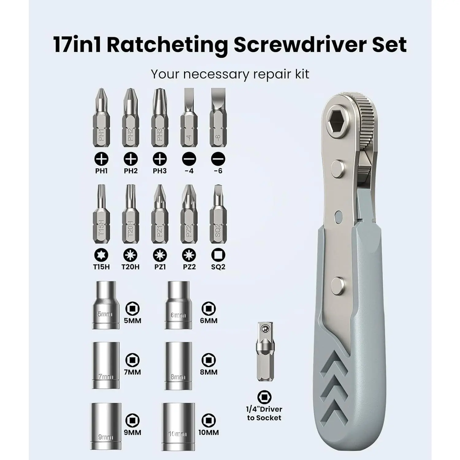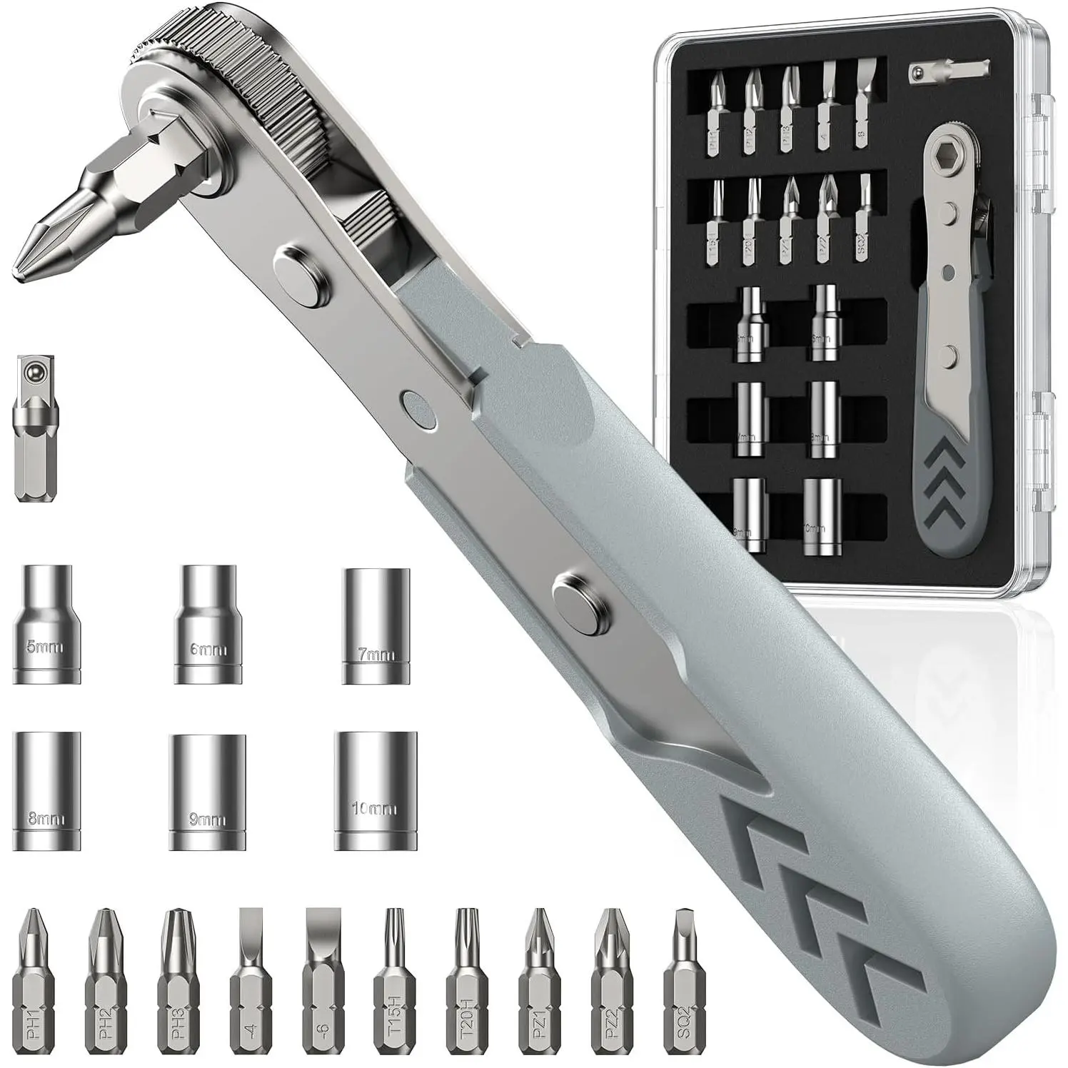 3. Bearing Steel Bits: All precision bits are made of the best Bearing Steel (Steel for tanks) and the hardness can reach over HRC65°, resist abrasion, oxidation and corrosion, ensure long time use. In addition, the strong magnetize-able tip easily pick-up and hold screws, helping you handle all tiny screws.