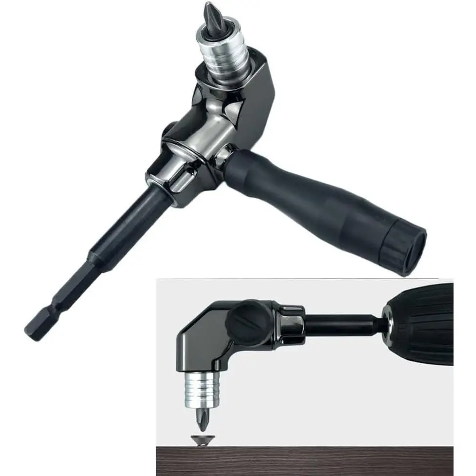Right Angle Screwdriver Adapter Quick Release Right Angle Driver Tool 1/4 Inch Hex Quick Release 90 Degree Self-Locking Bit Holder for Drill Driver Black(b)