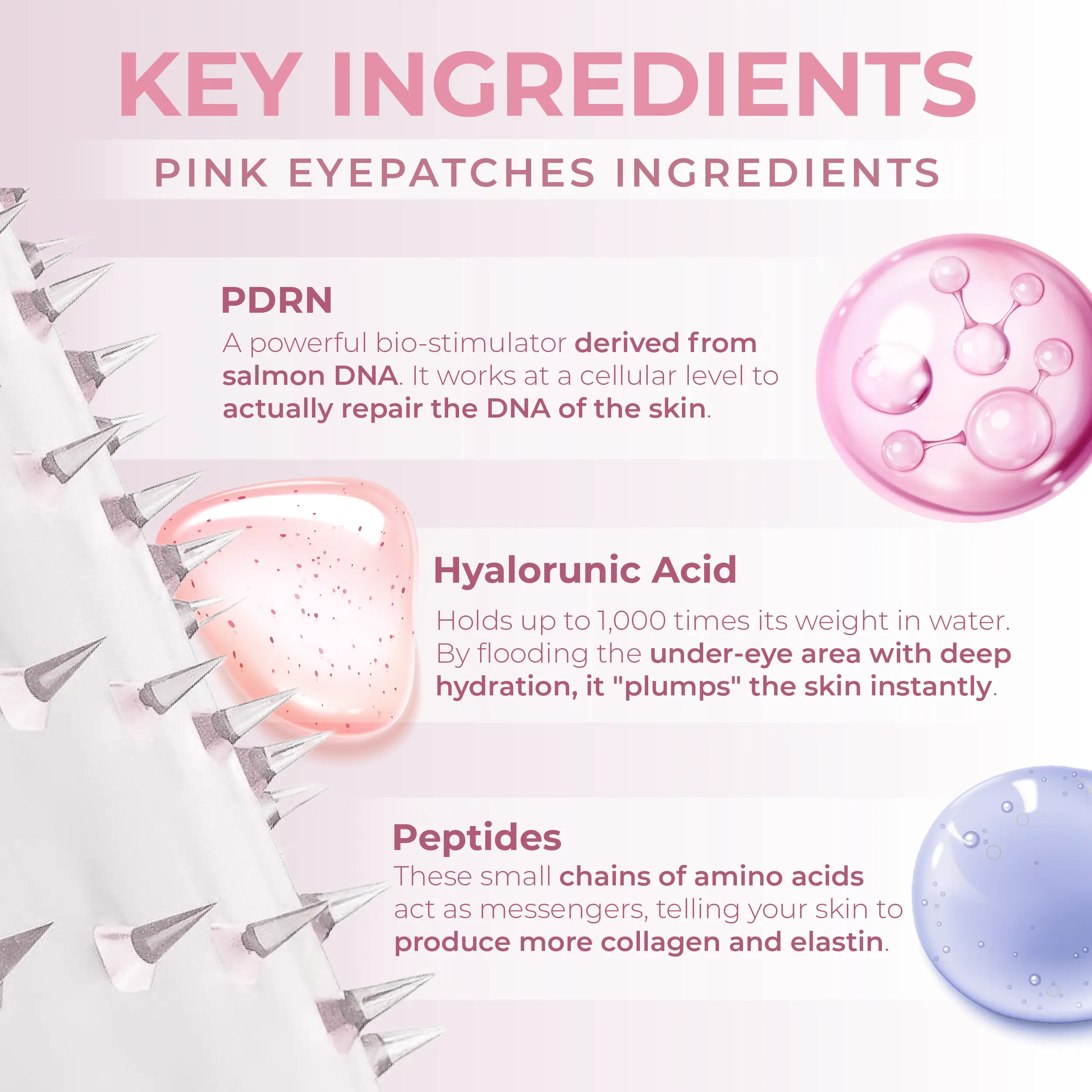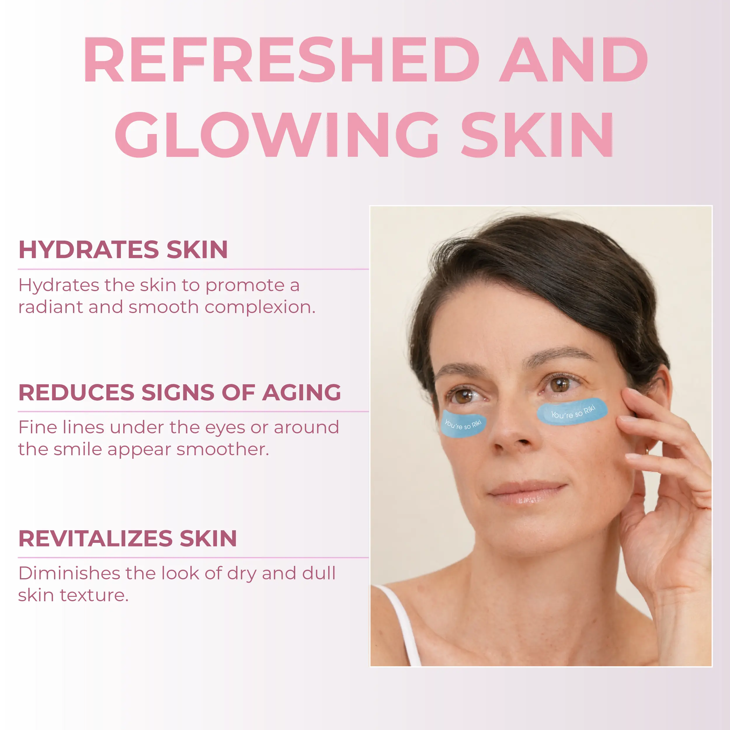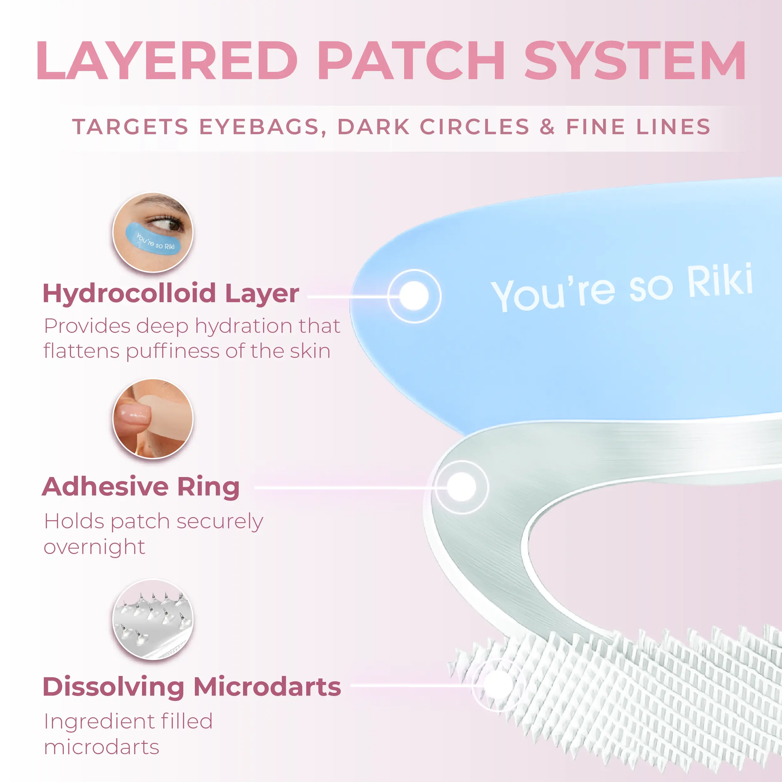Target fine lines and dullness with RIKI’s Pioneering Micropin™ Technology. Each precision patch is embedded with 800 self-dissolving micropins made from a concentrated blend of hyaluronic acid and peptides, designed to painlessly penetrate the skin’s surface and deliver actives exactly where you need them. These high-performance patches promote a radiant complexion, smooth the look of fine lines, and revive tired, dull skin—making them perfect for overnight renewal or pre-event prep.