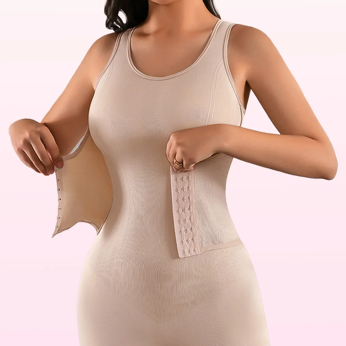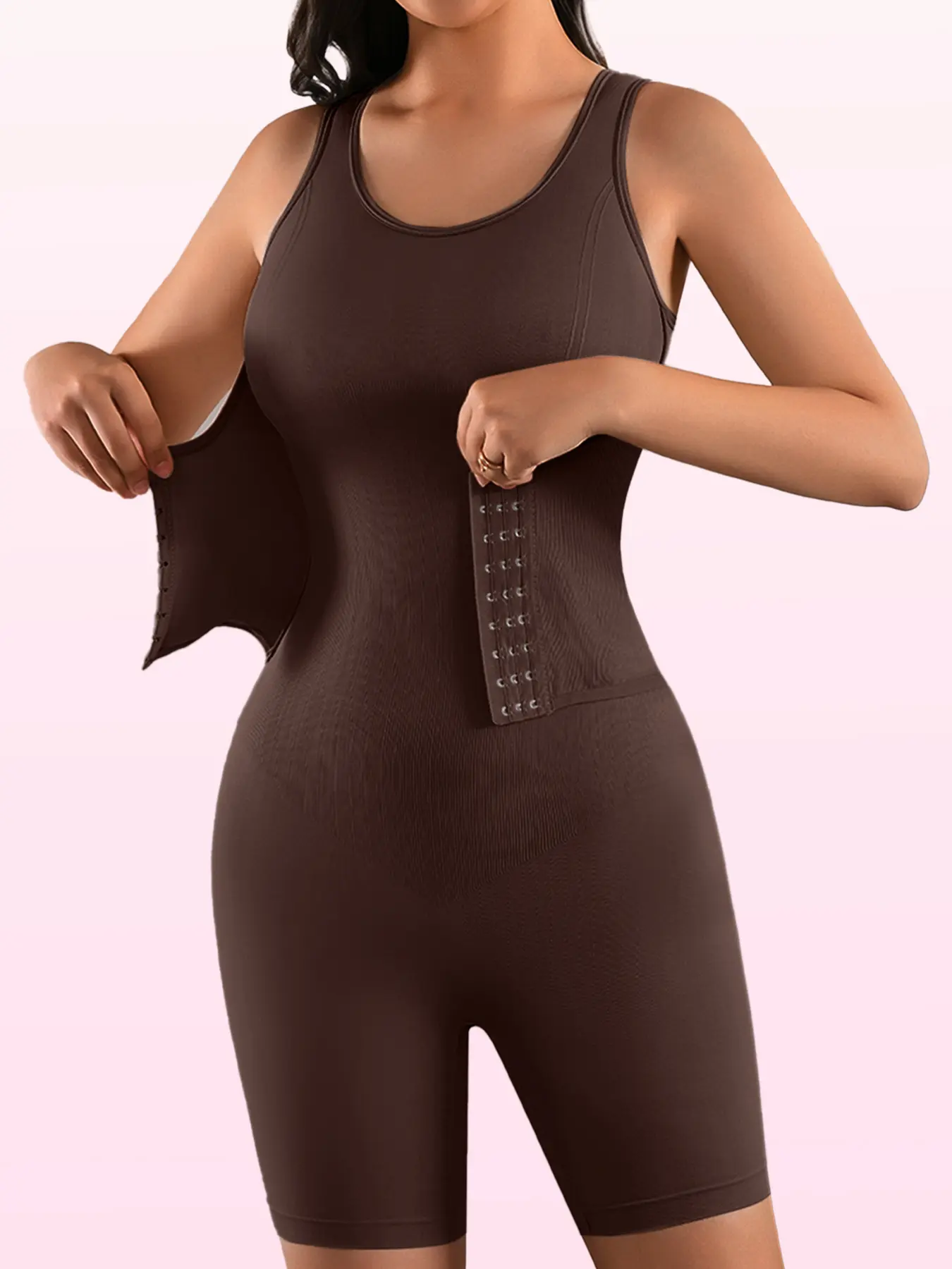 JUQDNX Solid Tummy Control Bodysuit with Abdominal Compression Women's Seamless Butt-Lifting Bodysuit with Snap Crotch Slimming Body Shaping Underwear & Postpartum Shapewear Features faja con rellenos