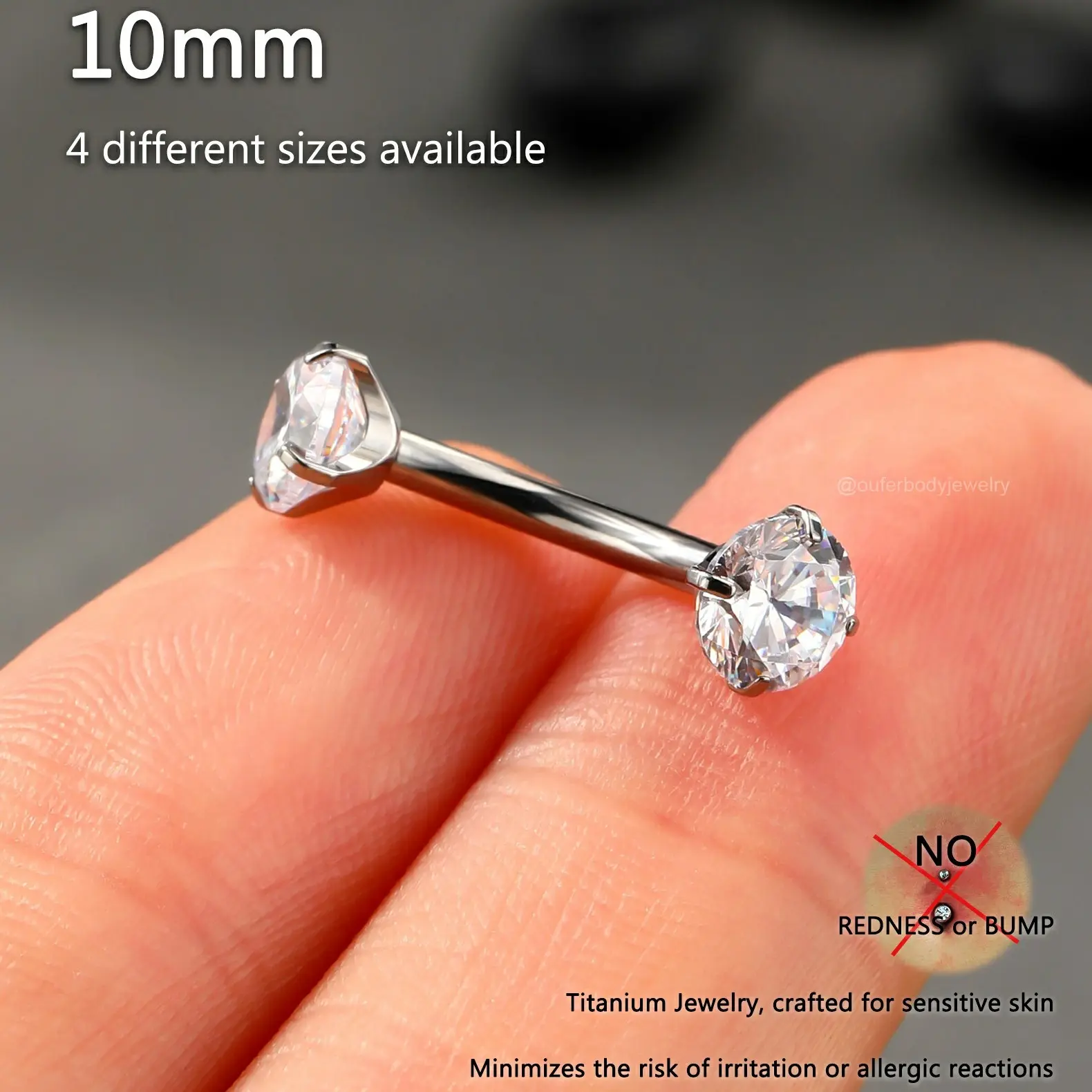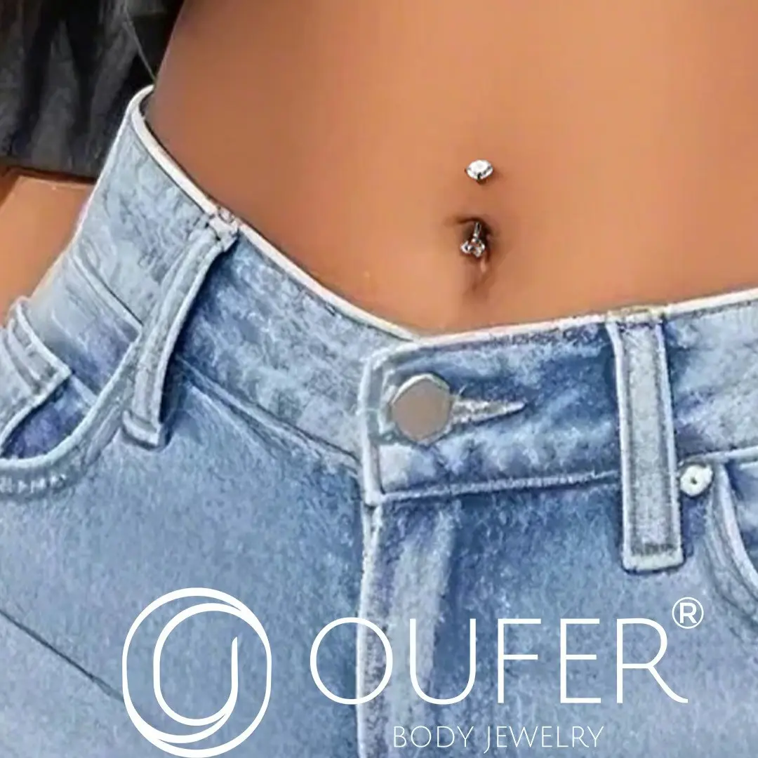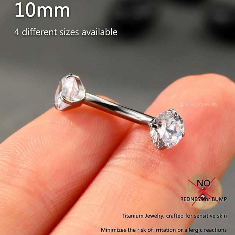This internally threaded titanium belly piercing features a round CZ gem on the top and the same one on the bottom, both sides can be opened, and you can wear it easily. The titanium material is lightweight and has no damage to the skin, very good for sensitive skin.