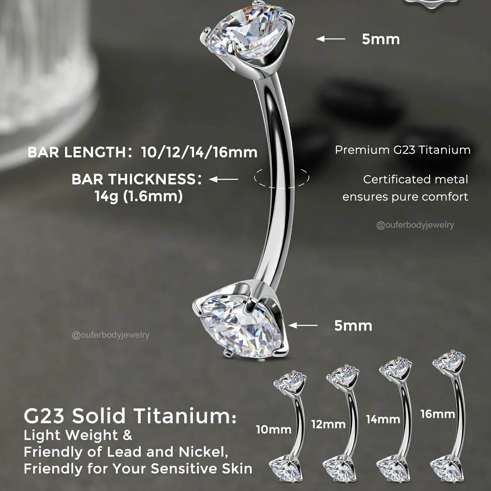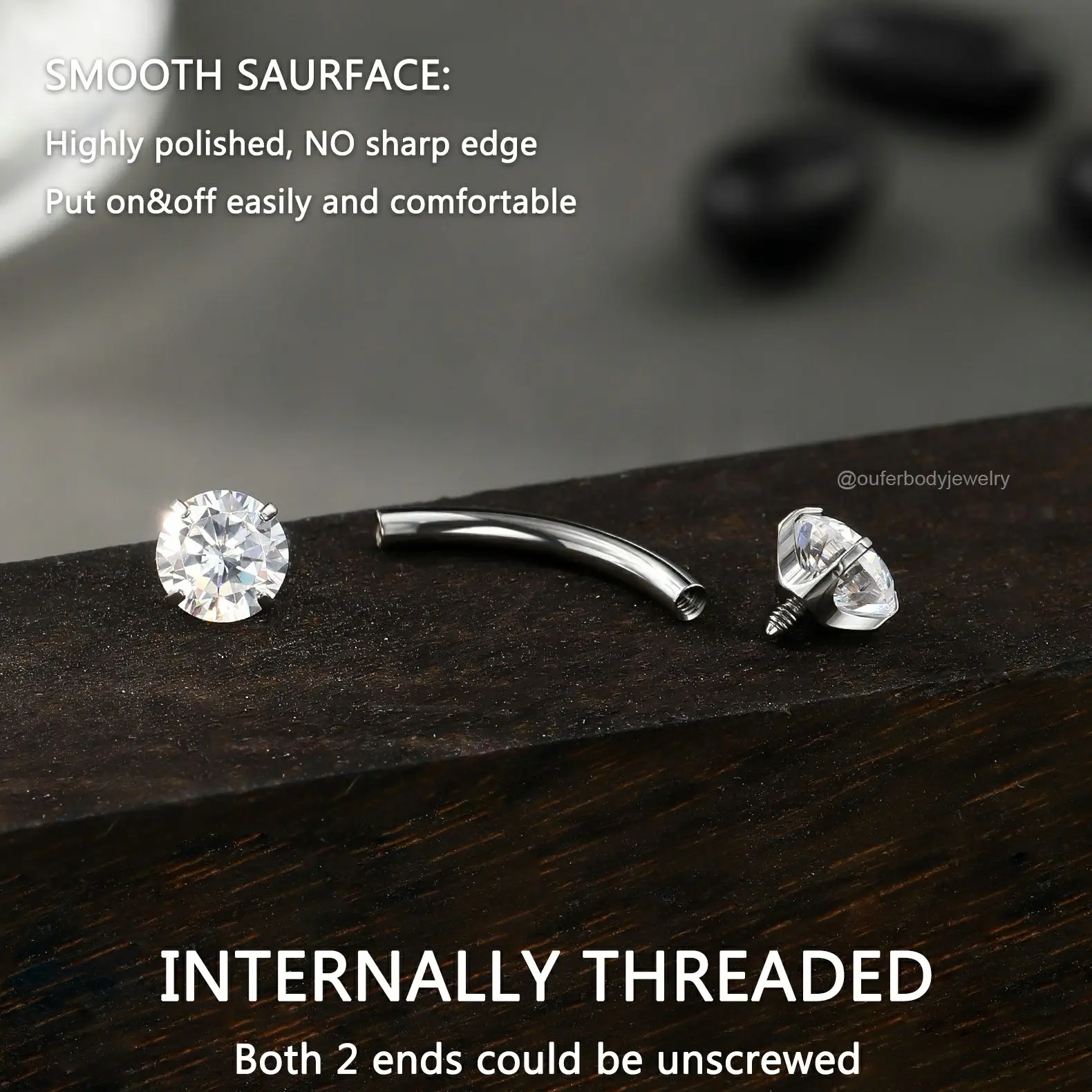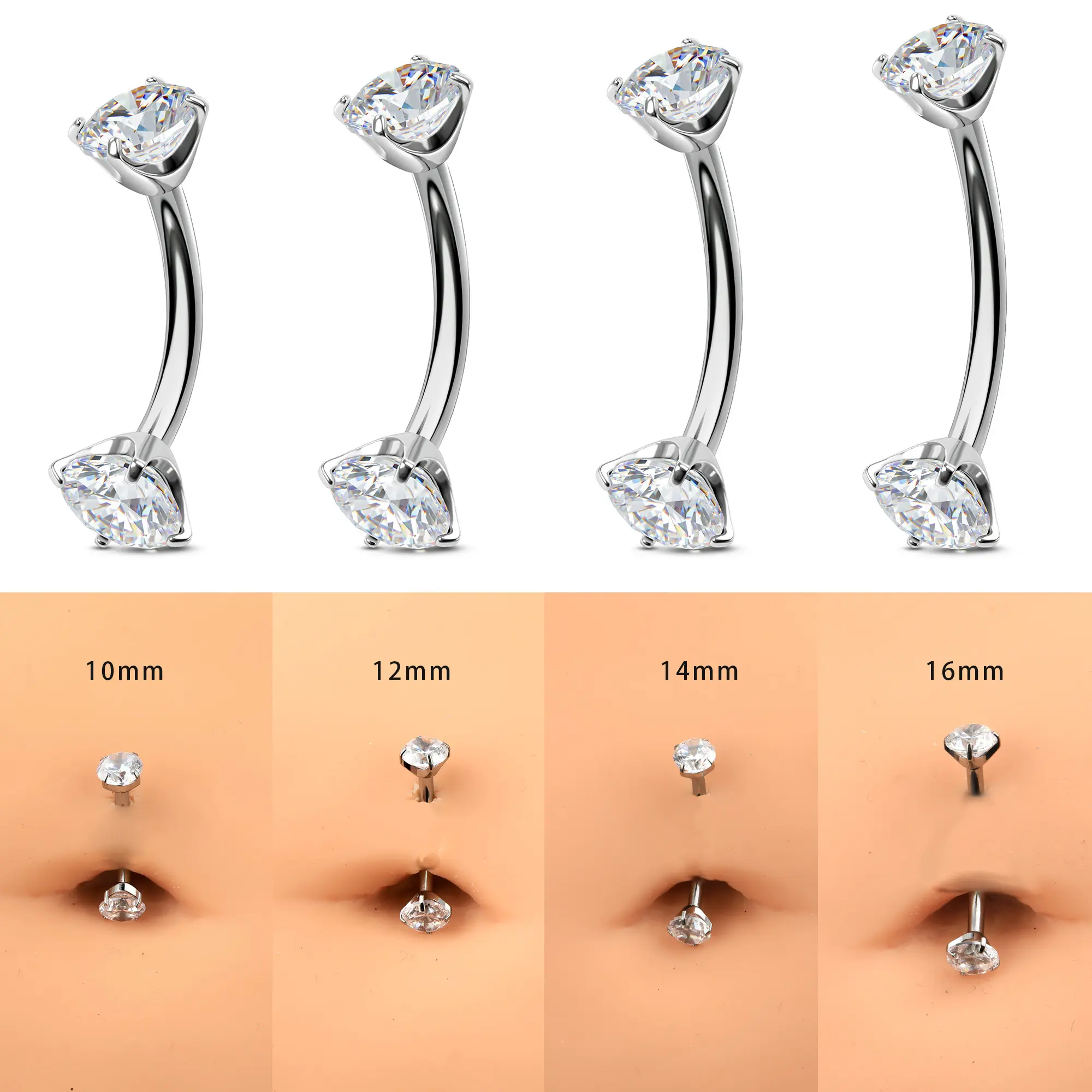 This internally threaded titanium belly piercing features a round CZ gem on the top and the same one on the bottom, both sides can be opened, and you can wear it easily. The titanium material is lightweight and has no damage to the skin, very good for sensitive skin.