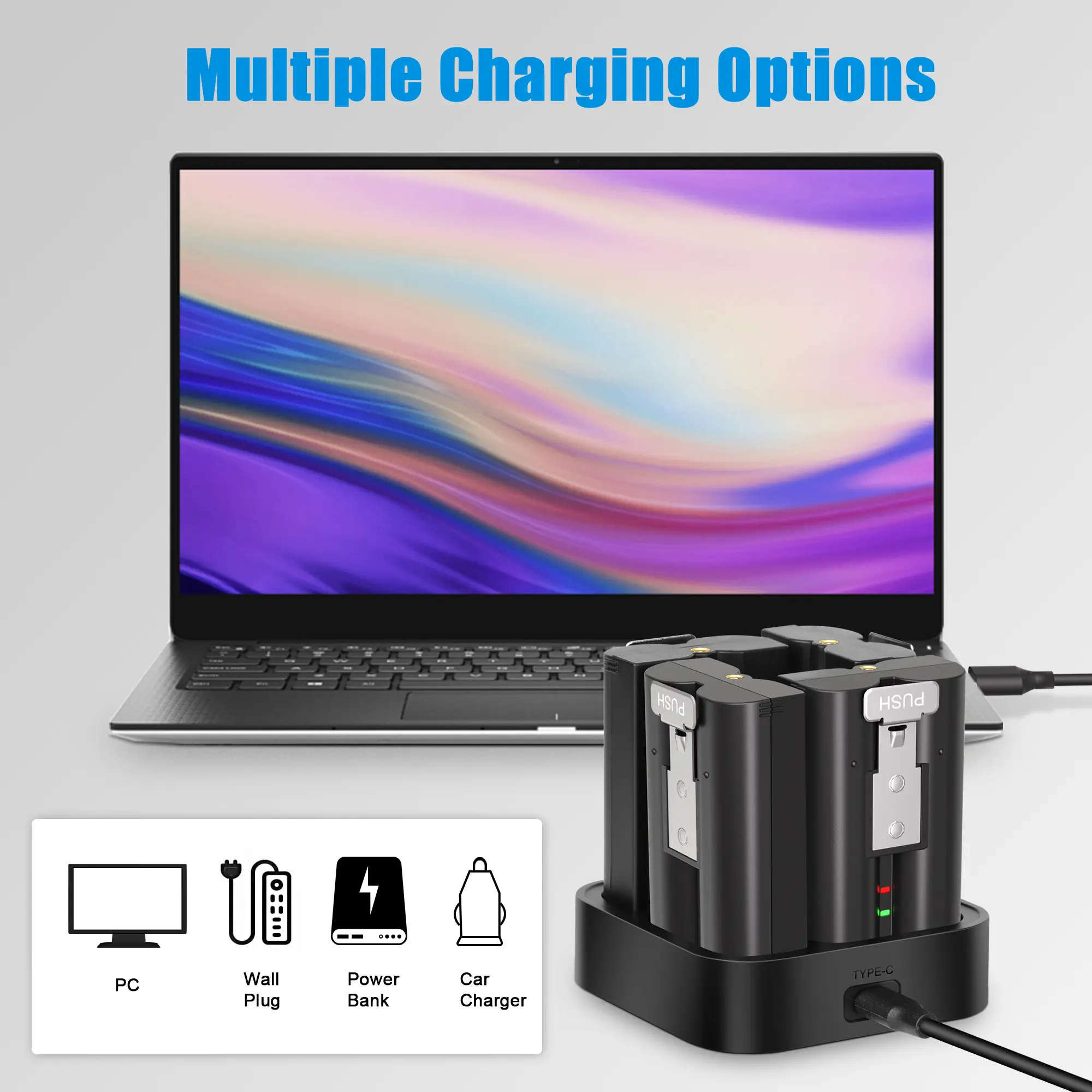 Our Ring camera batteries have a built-in charger port. Charge via any Type-C cable, such as a PC, car charger, or power bank. Charge two Ring battery doorbells simultaneously with a dual charger. Keep your Ring battery cameras running with minimal downtime.