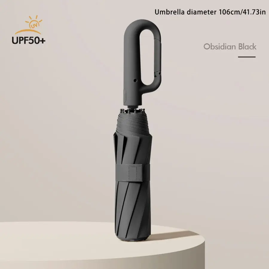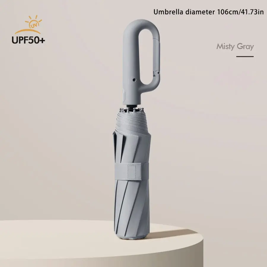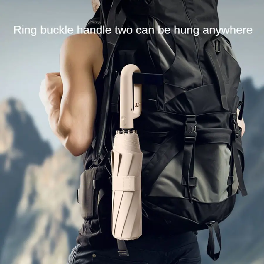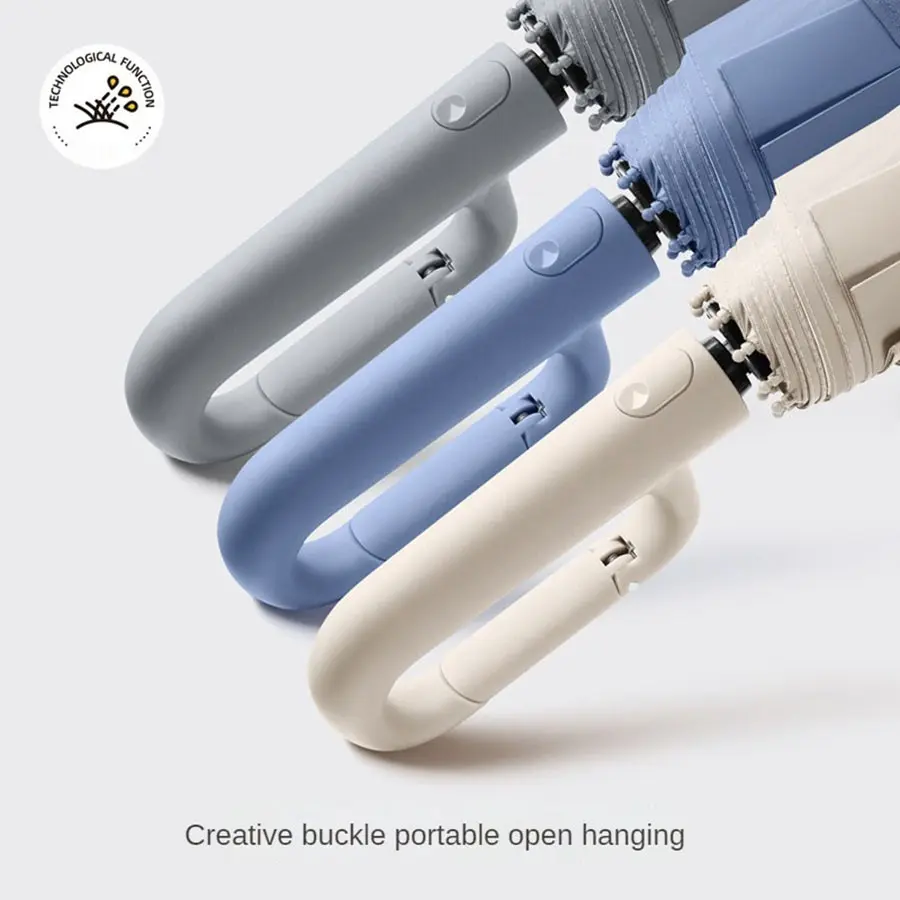 Ring Buckle Handle Automatic Umbrella, Thickened Reinforced Dual-Purpose Folding Umbrella for Two, Sunshade & Rainproof, 1pc