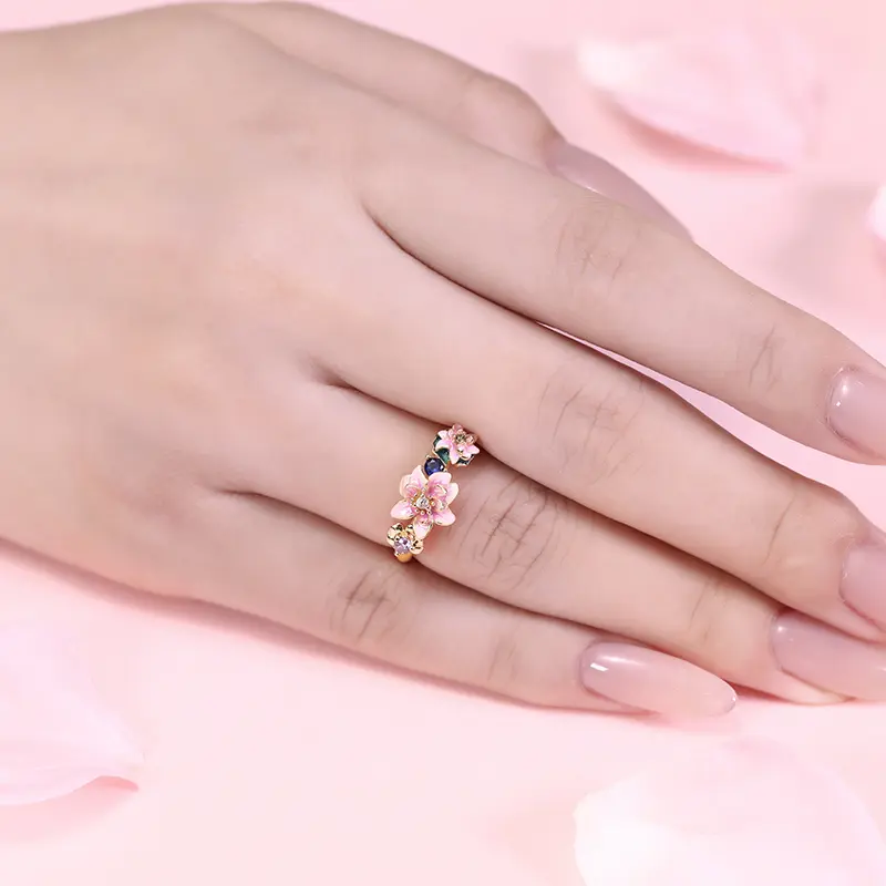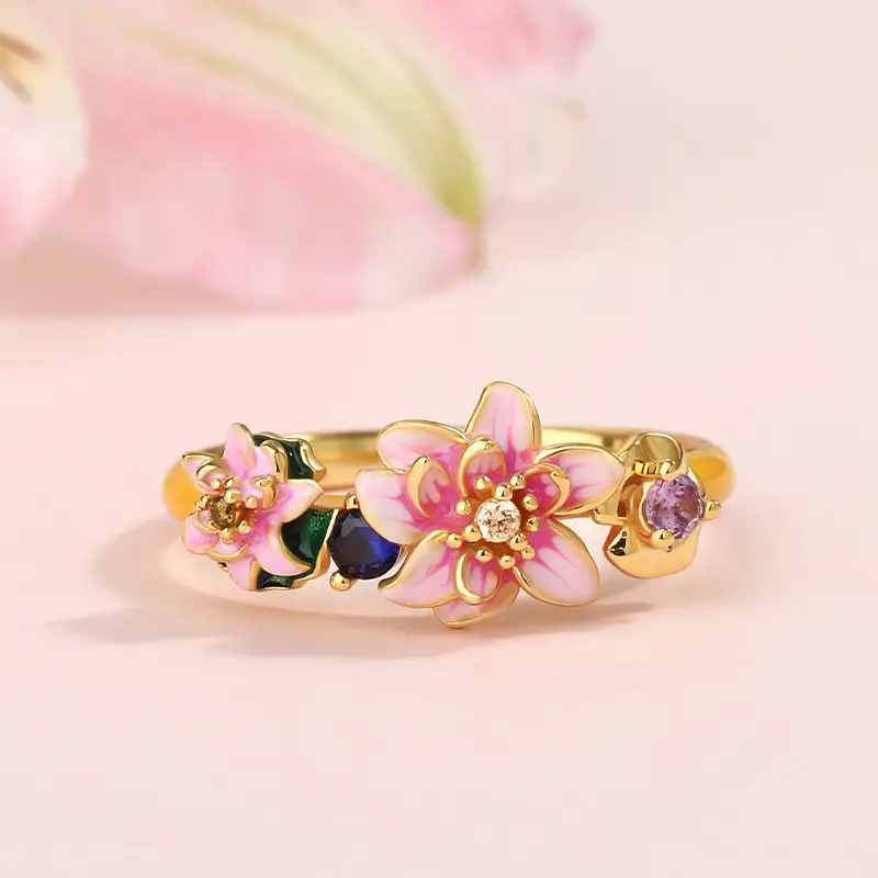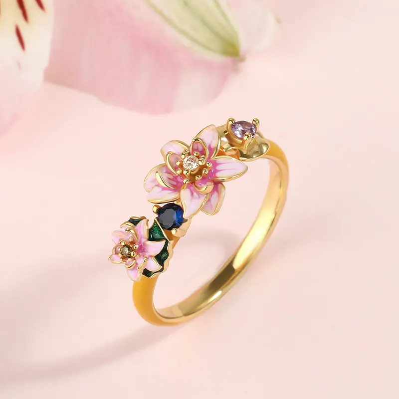 Jeulia "Tenderness in The Pond" Water Lilies Inspired Enamel Sterling Silver Ring